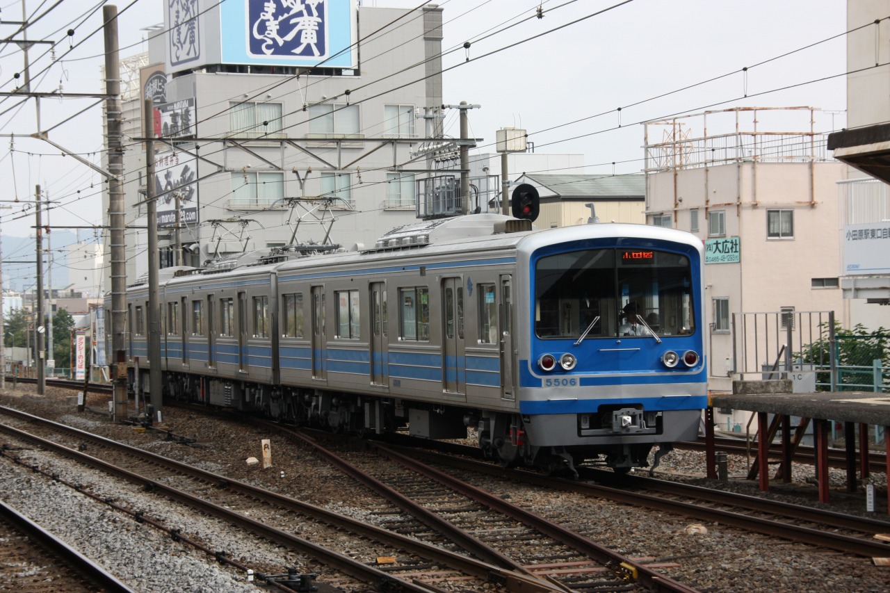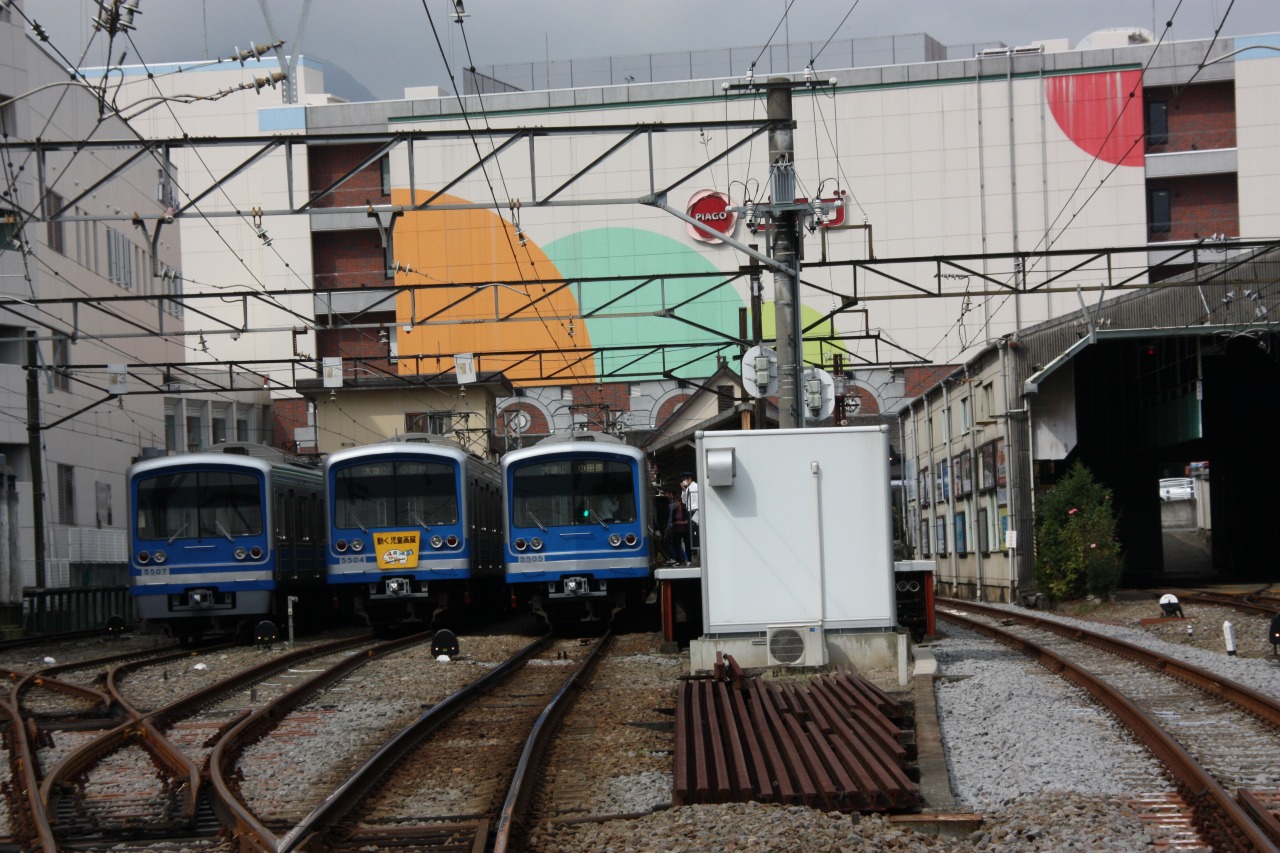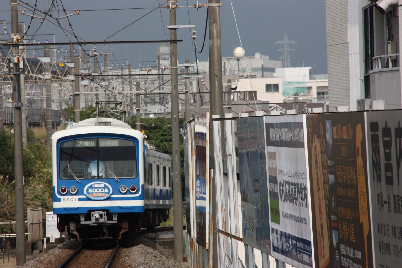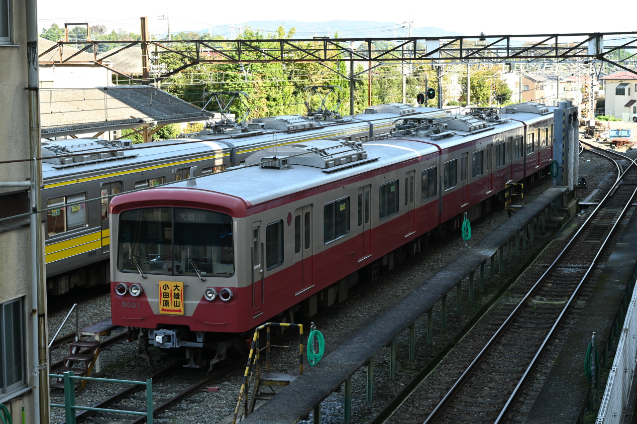 5000系第3編成。方向膜は大雄山行きか 小田原行きしか無いので左が大雄山、右に小田原の固定です。 小田原駅の片隅に大雄山線のホームがあります。