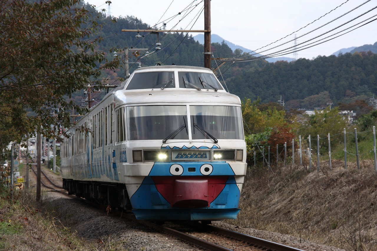1975年に1編成のみ導入された日本車輛製の自社発注車です。トーマスランド号として運用されていました。2019年に引退、廃車となりました。5001は下吉田駅で保存されています。1982年も同じ場所で撮影しています。