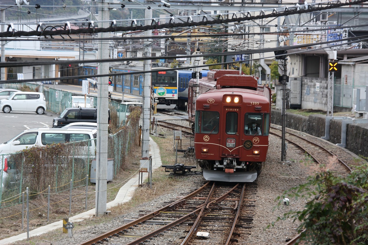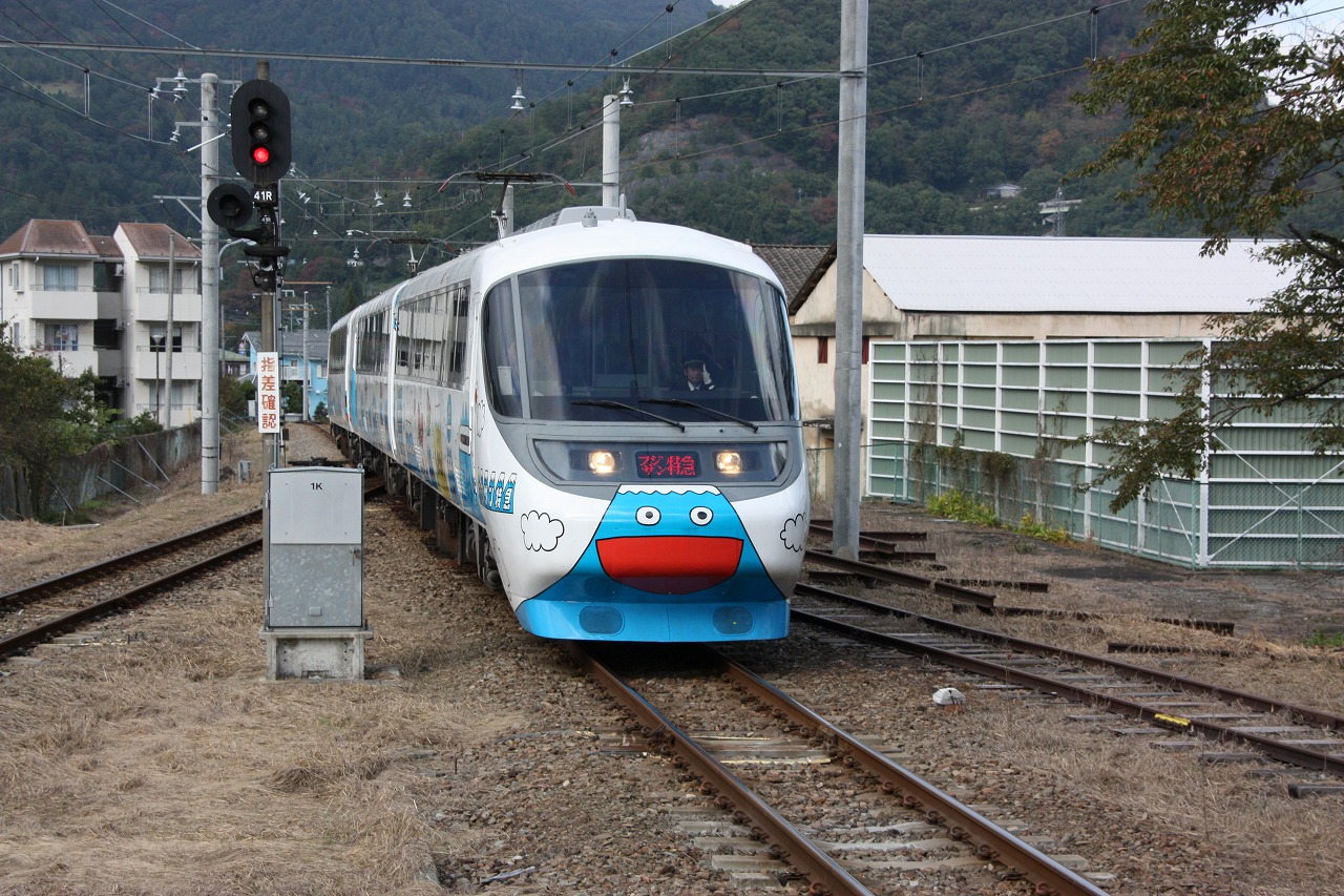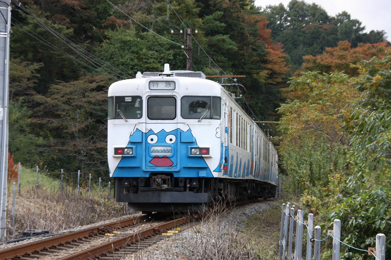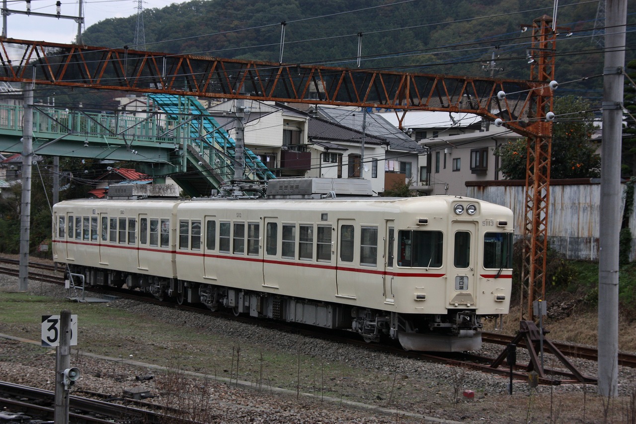 元京王クハ5863+デハ5113。1994年譲受。京王時代の塗装となり、車番も京王時代の番号をつけています。元京王5000系は各地に譲渡されており、伊予鉄道700系、一畑電車2100系、高松琴平電鉄1100形、伊予鉄道から譲渡された銚子電鉄3000形があります。