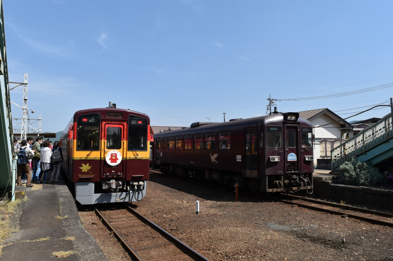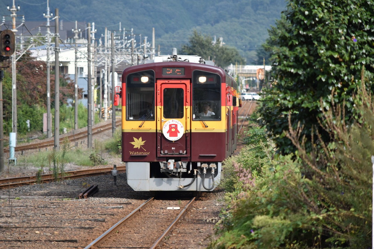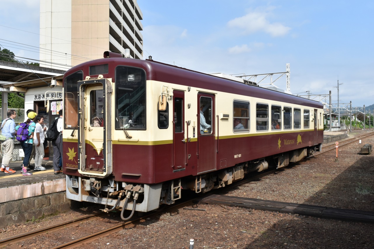 トロッコわっしー1号。 トロッコと言っても窓がオープンなだけで立派な気動車。 WKT550は人気のトロッコ列車の増発用に2012年導入。 WKT510形は2013年導入。もっぱら「トロッコわっしー」のWKT550のお相手役を務めています。