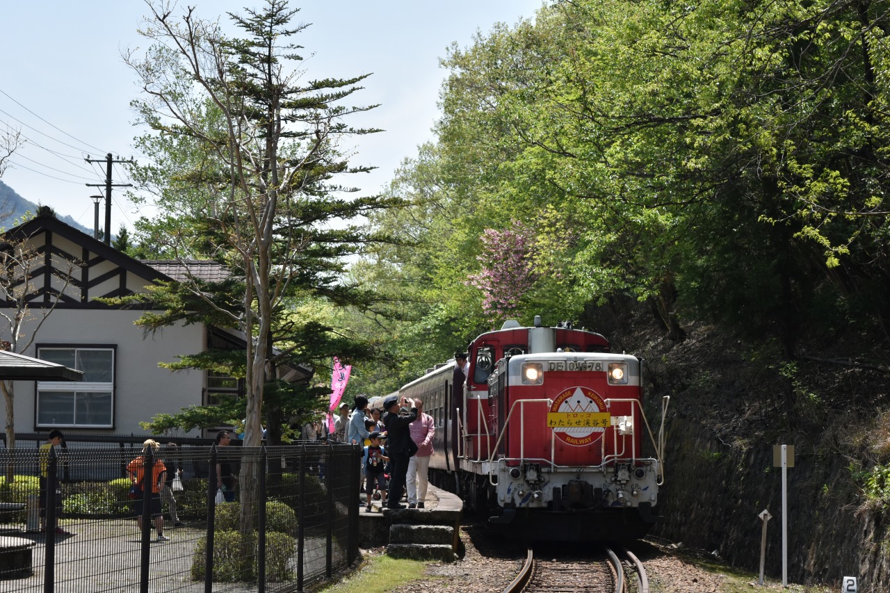 トロッコわっしー1号は新緑を求める観光客で満員でした。