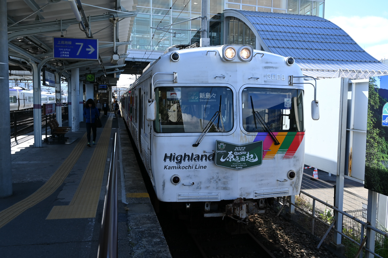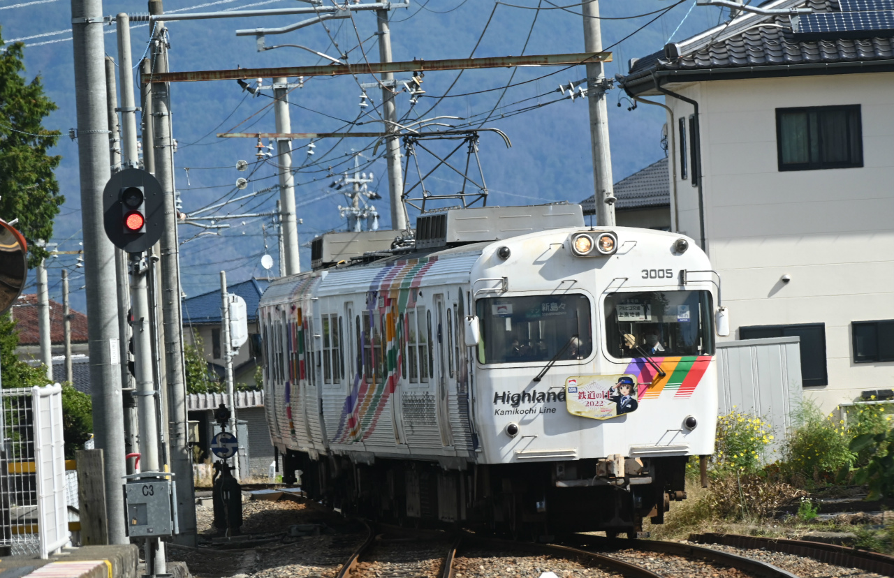 信州の城下町、松本から北アルプス上高地の入口、新島々まで14.4㎞を結んでいます。