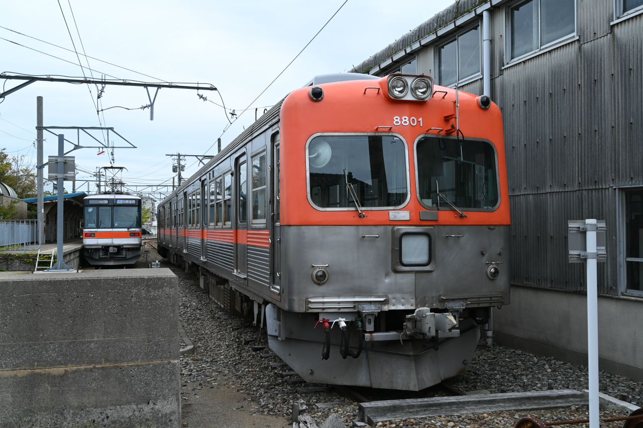1962年東急車輌製の元京王帝都3000系クハ3701+クハ3751。1996年に譲受。客用ドアが片開きで車体の裾が絞られていない初期のタイプ。8802Fの廃車により、1編成が残るのみとなりました。
