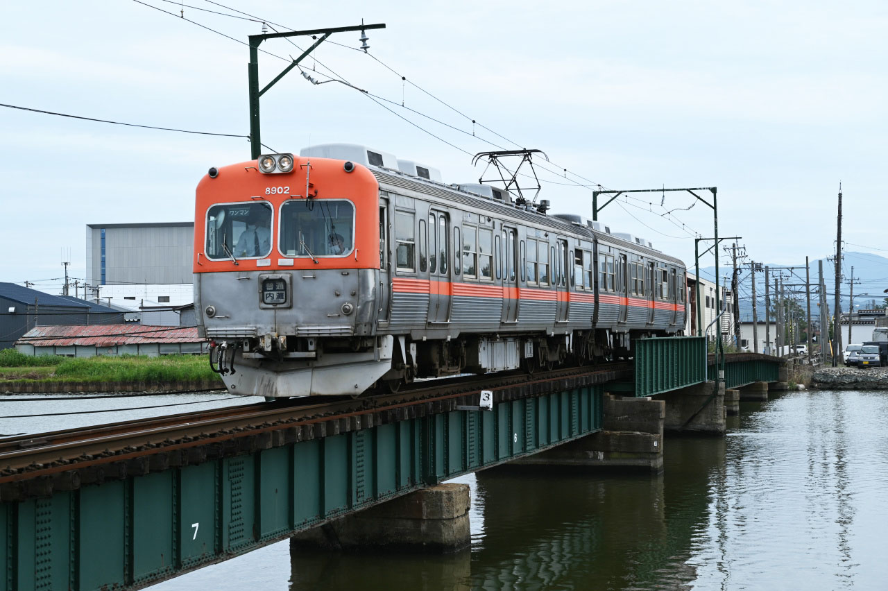 1964年東急車輌製の元京王帝都3000系クハ3754+クハ3704。1996年に譲受。京王時代の中間車の機器を使用し電装されています。京王3000系は各地に譲渡されており、 北陸鉄道石川線7700系、伊予鉄道3000系、岳南鉄道7000形、上毛電鉄700形、アルピコ交通3000系、があります。 浅野川線の8000系は2024年までに03形に置き換えられる見込みです。