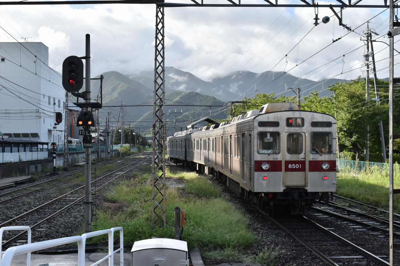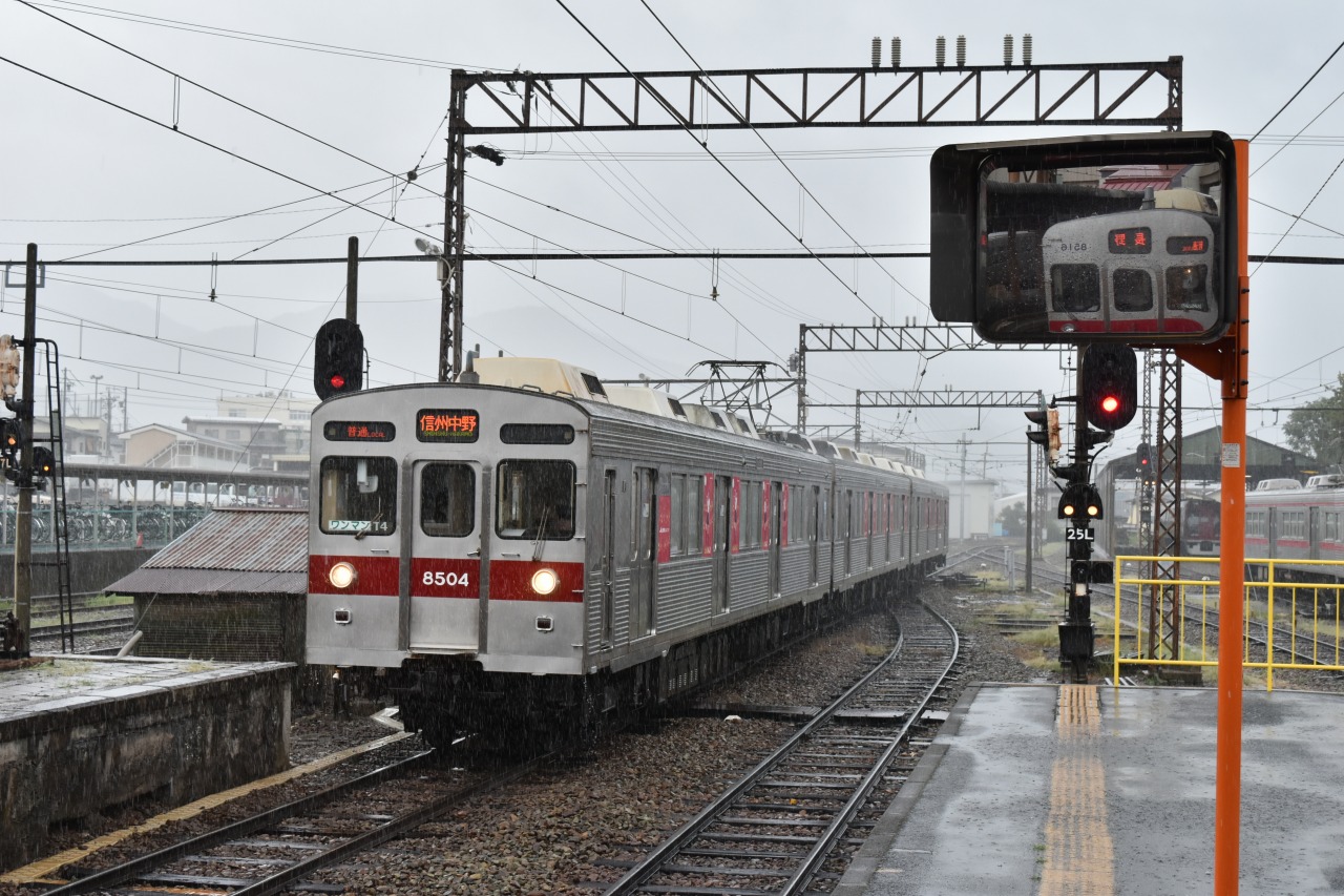信州中野からは急勾配となるため、勾配用の装備を持たない8500系は長野~信州中野の運用です。