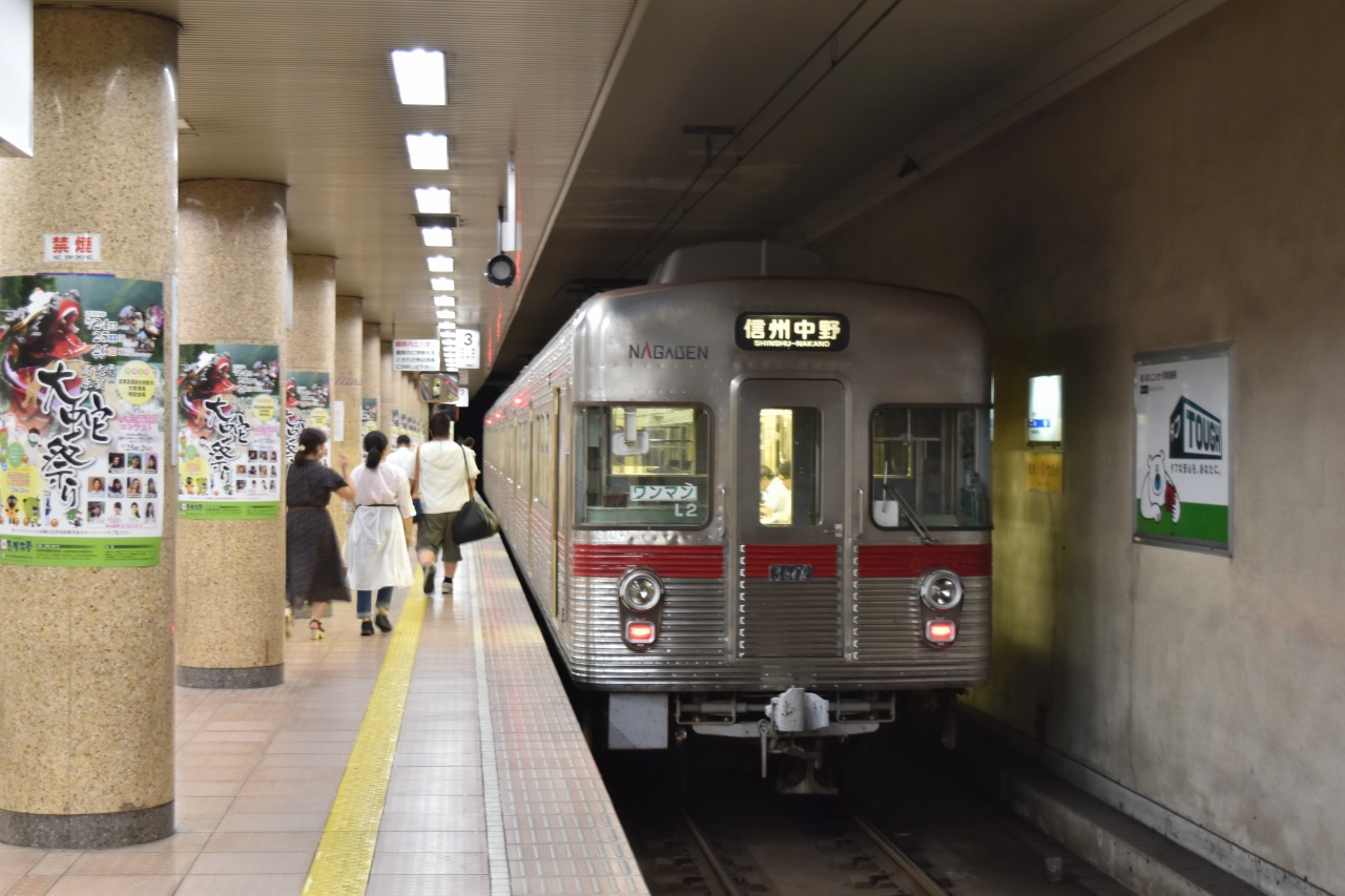 元営団地下鉄3000系3050+3049。2020年廃車。湯田中までのローカルは3500系が専用で運用されていました。