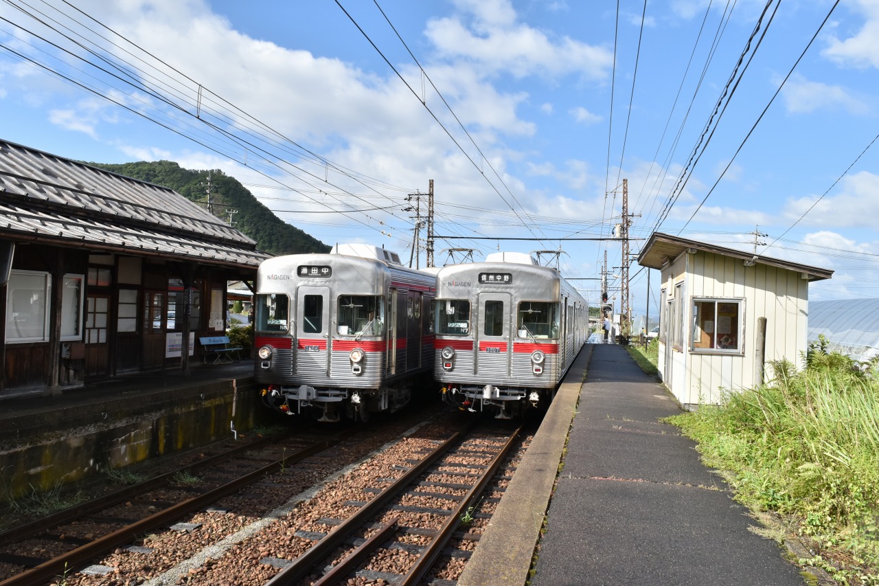 信濃竹原で3500系の交換。なぜか右側通行です。