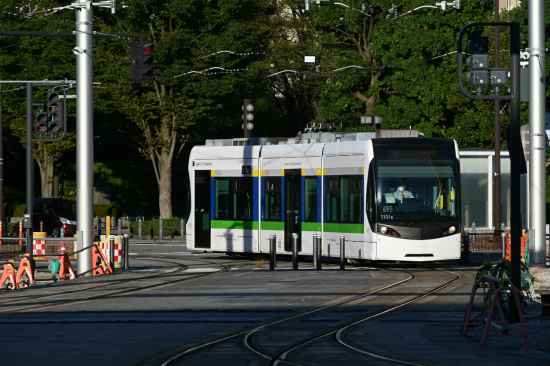 2009年の環状線復活時に導入された新潟トランシス製のLRV。愛称は「セントラム」。富山ライトレールが導入したTLR601形と同系車です。