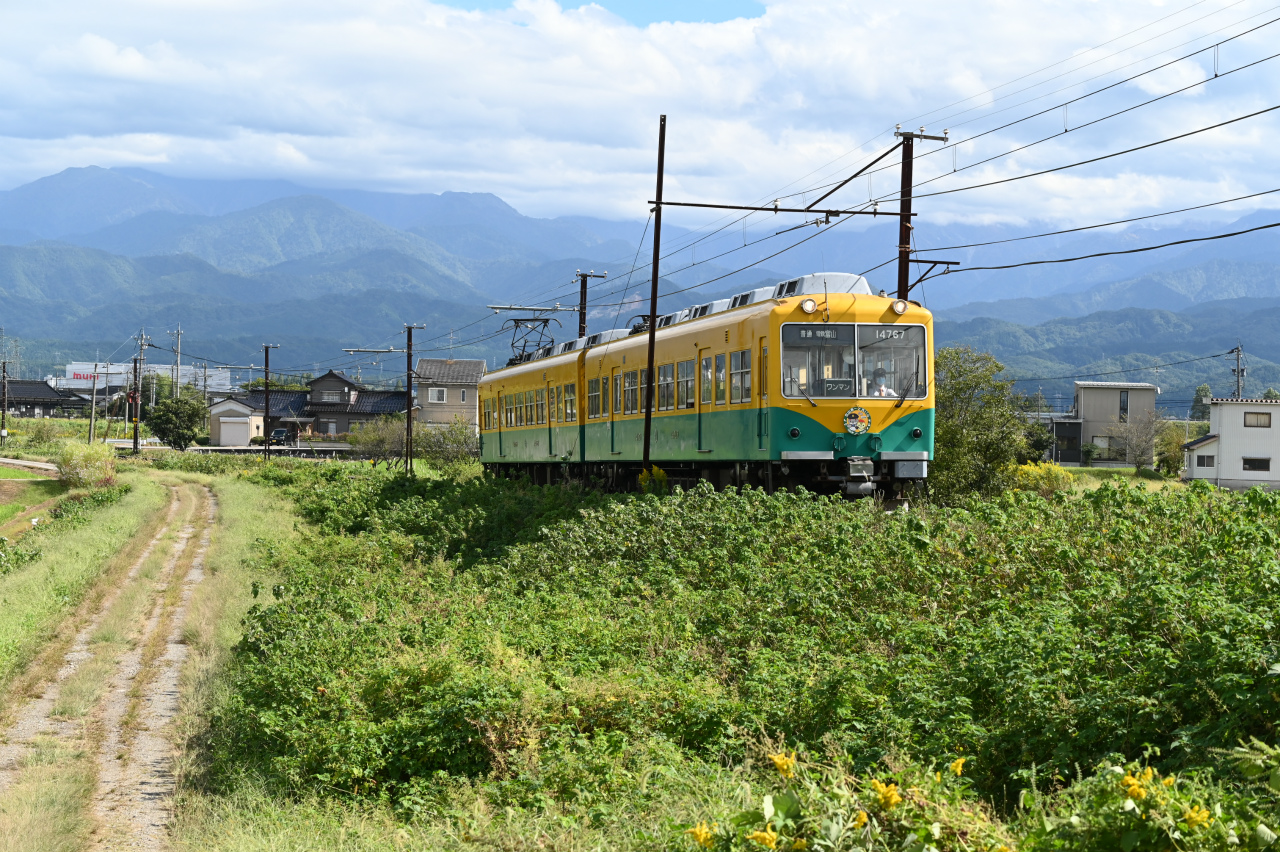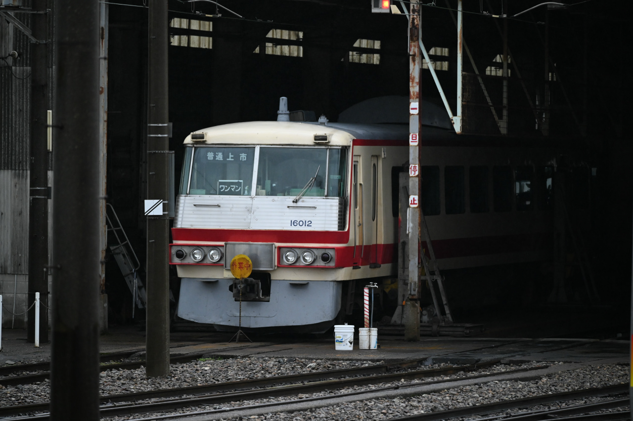 1969年日立製作所製の元西武5000系クハ5502。西武秩父線の特急「レッドアロー」の車体を1995年に譲受。稲荷町工場で改造。2編成あり、1編成は「アルプスエキスプレス」に改造されています。