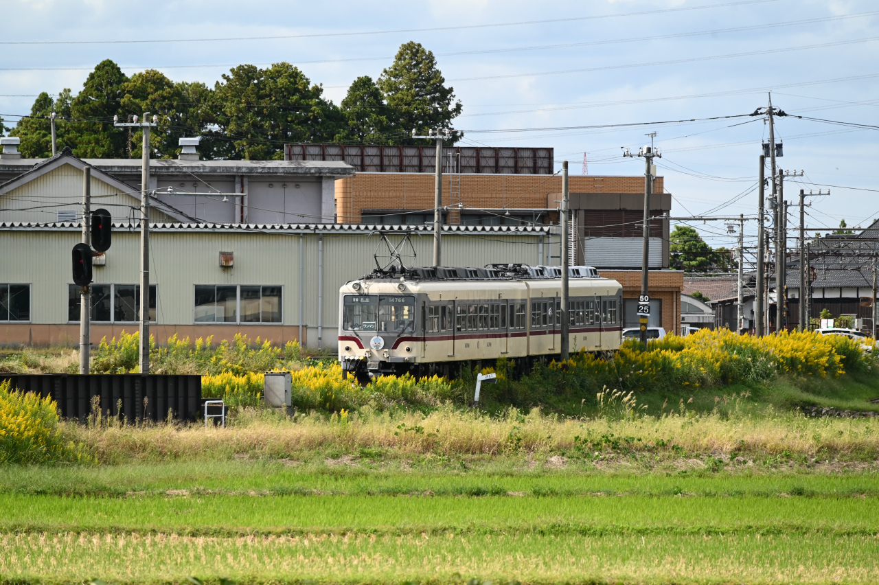 1979年日本車輛製。南富山には市内線の車庫があり、市内線と連絡しています。また、1975年まで笹津線が出ていました。笹津線のホームがあったあたりから撮影しています。