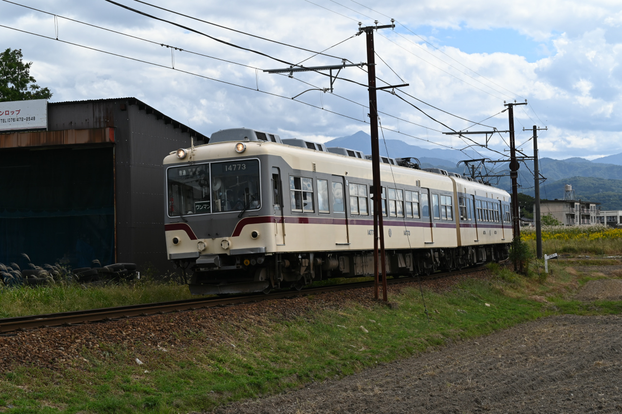 1989年東急車輛製の元東急8590系デハ8593+デハ8693。2013年譲受。鉄道線の車輛では最も車齢が若いです。同系車に秩父鉄道7500系があります。