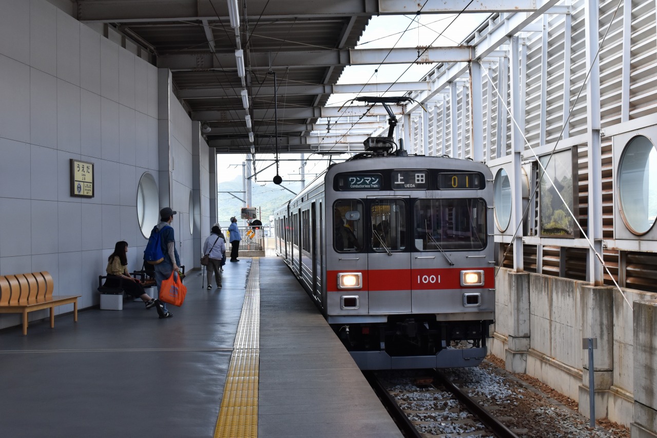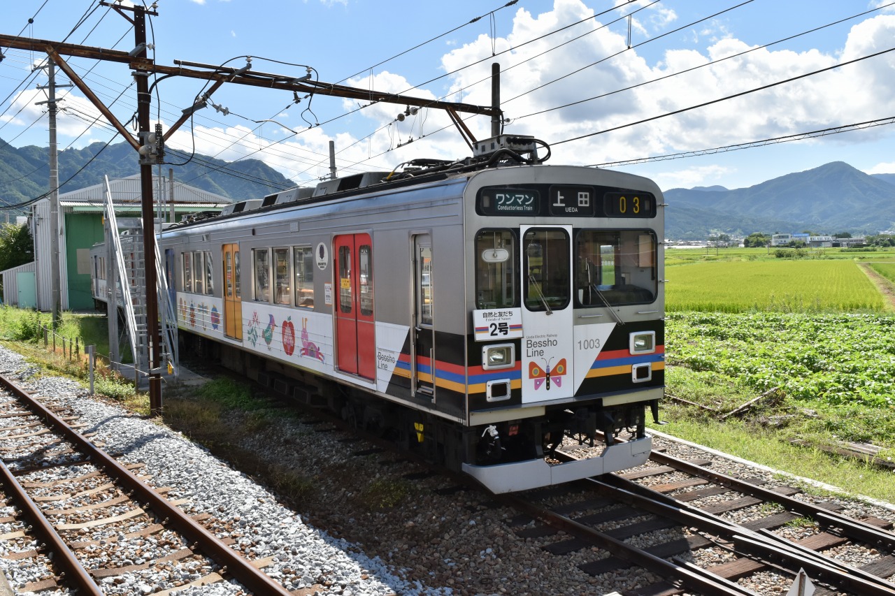 かっては昭和初期製の上田丸子電鉄時代からの電車や、各地から集めた古い電車の走る、ローカルムード満点の路線でしたが、何度も廃止の危機を乗り切り、近代的なローカル線に生まれ変わりました。 始発の上田駅は、新幹線開業により高架となり、かっての面影はありません。電車もすべて東急から来た平成生まれで、面目を一新しています。また、2019年台風19号により千曲川橋梁が崩落し、上田~城下が1年以上運休しましたが、2021年に復旧しています。