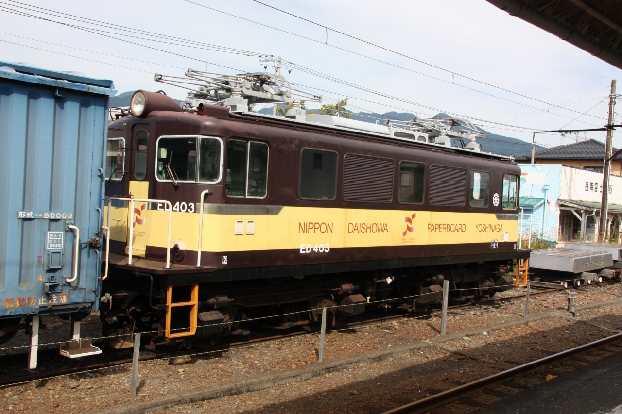 同じく元松本電鉄ED403。1970年入線。こちらは製紙メーカー塗装。二台とも岳南富士岡に留置されています。