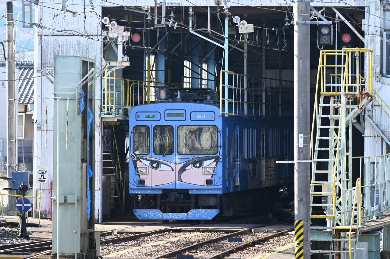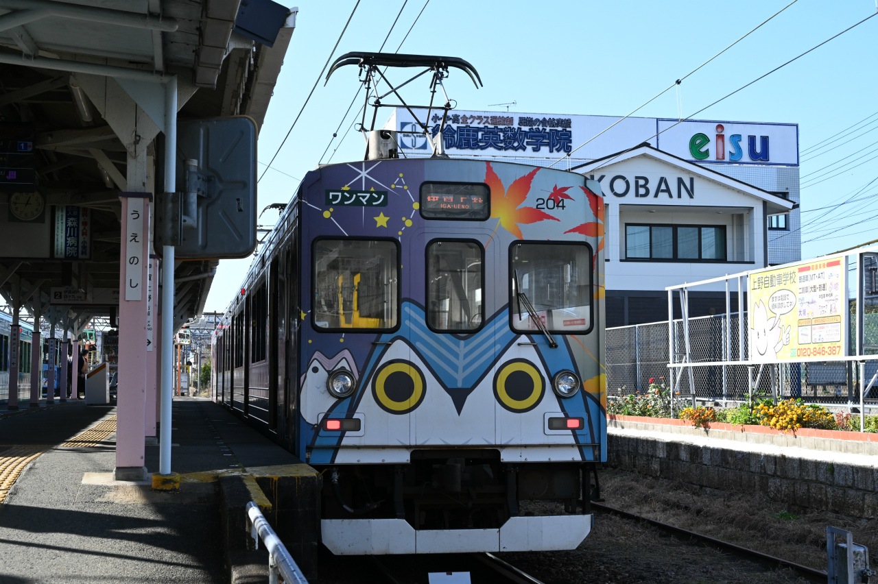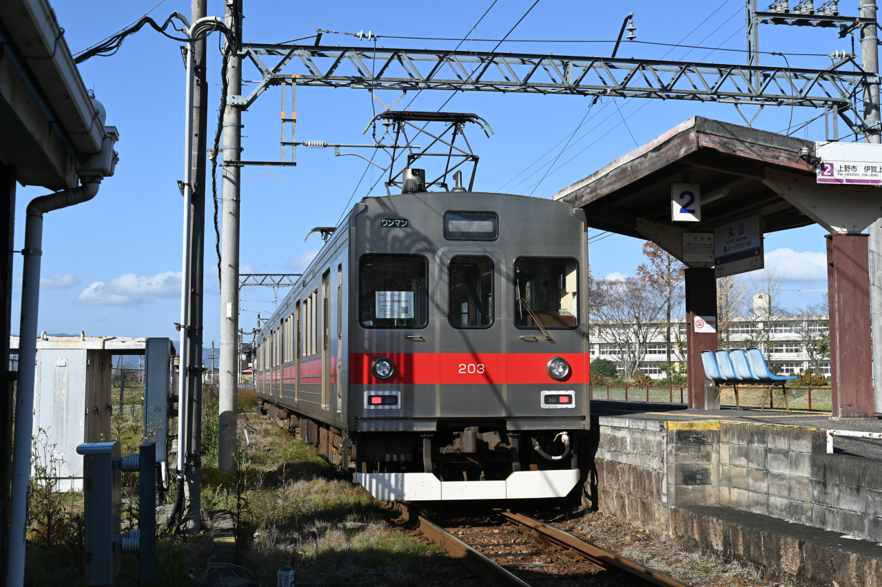 忍者の里、伊賀盆地のJR関西線伊賀上野から近鉄大阪線伊賀神戸まで16.6㎞を結んでいます。1916年に伊賀軌道として開業。1917年伊賀鉄道に改称。1922年に名張(後、西名張)までの全線開通。1926年に全線電化。1929年に大阪電気軌道(現近鉄)に合併。1944年に近畿日本鉄道となり、同社伊賀線。 1964年に大阪線と重複する西名張~伊賀神戸廃止。 2007年に分社化され伊賀鉄道。分社化当初は近鉄からの引き継ぎ車860系が運用されていましたが、2009年から東急1000系を200系として導入し、すべて置き換わっています。