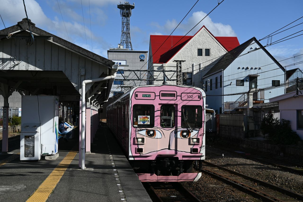 元東急1000系デハ1406+クハ1106。2011年譲受。こちらも中間車と先頭車の改造。元東急1000形でこういう編成が見られるのはここだけです。2022年現在ラッピングされていない唯一の編成です。