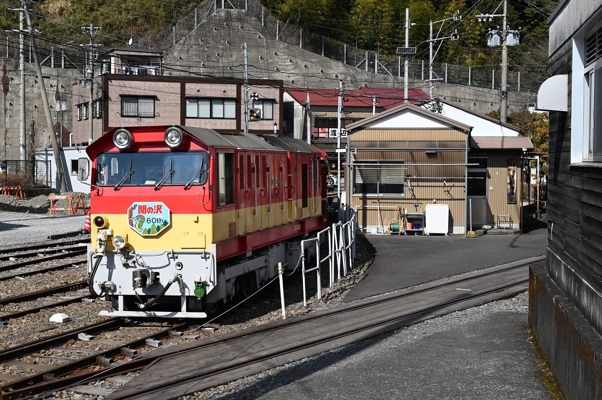 1987年西武所沢工場製。2010年に西武より譲渡。しばらく使用されていませんでしたが、2017年に整備され、SL列車の補機、新金谷での入換えに使用されています。