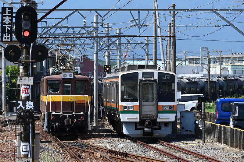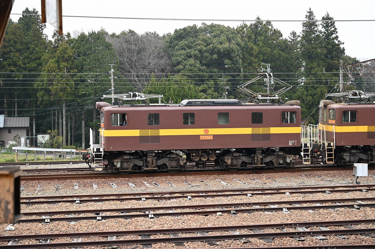 1963年東芝製の元南海ED5201型ED5202。1984年南海の貨物輸送廃止に伴い譲受。貴重な南海タイプ電気機関車の生き残りです。普段は太平洋セメント藤原工場の中で入れ替えを行っており、検査で保々に来る時位しか姿を見ることはありません。