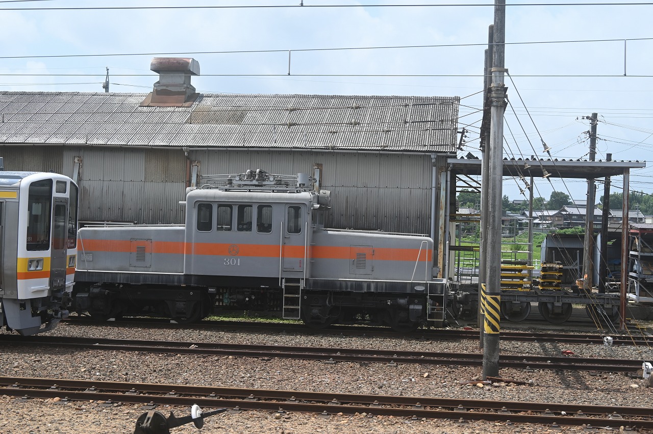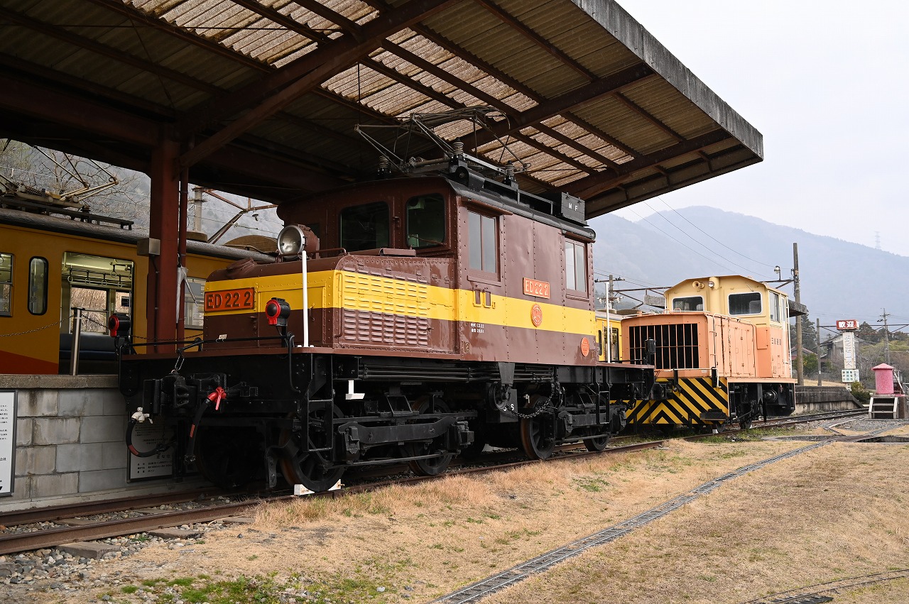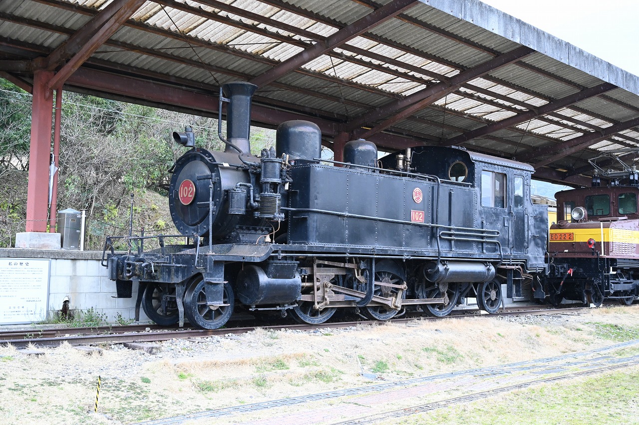 西藤原駅には開業時に使用されたE102号機とウェスティングハウス製のED222、三岐通運のDB25が保存されています。