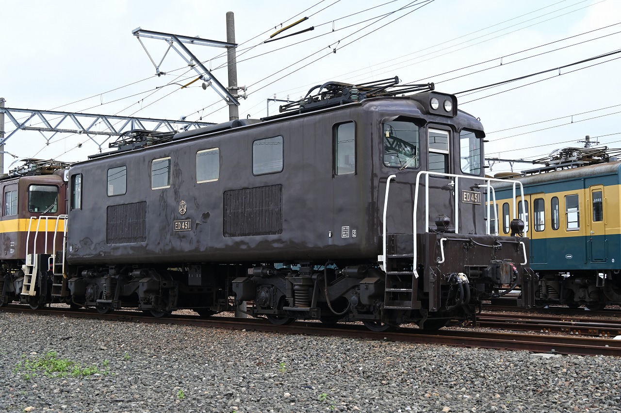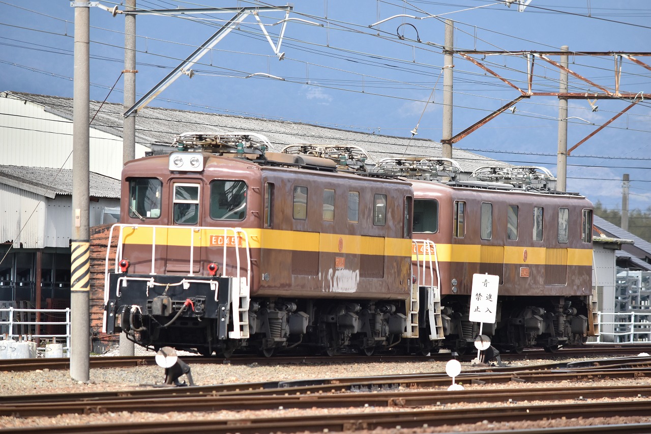 ED451は1953年東洋電機・東洋工機製の自社発注機。ED455は元富山地方鉄道デキ19042。1960年譲受。セメント輸送に活躍しています。