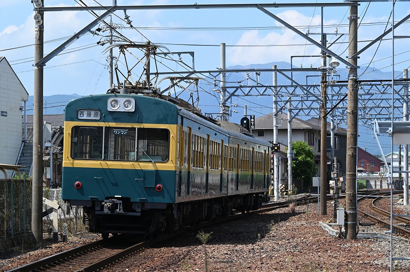 1995年に譲渡された、元西武701系789F編成。導入時に6両→3両改造されており、台車はクハは空気バネのまま、電動車も空気バネに換装されています。台車の違いから、851系となっています。また、2012年にクハ1851が事故廃車となったため、西武101系のクハ1238を改造したクハ1881に交換されており、前後で顔がちがっています。2025年5000系S51編成導入に伴い廃車