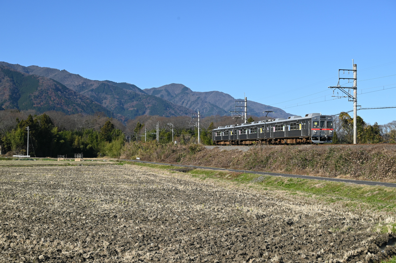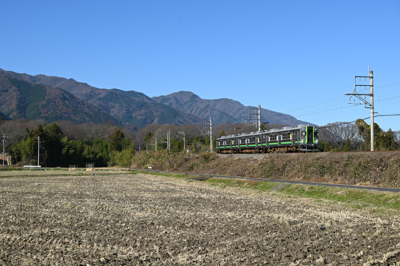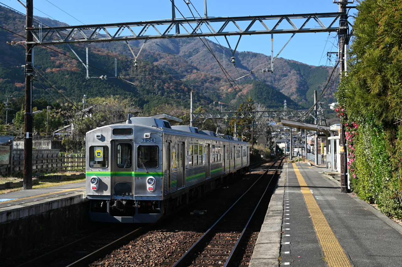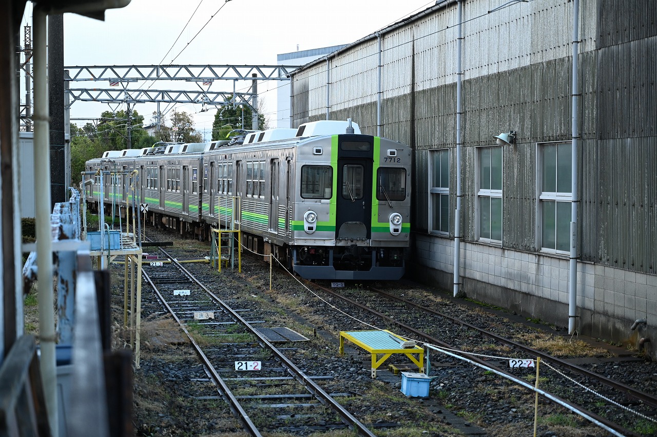 東急時代の車番のままです。東急7700系は7000系の改造で元は1963年製のデハ7023+デハ7112+デハ7024です。目蒲線用に改造され、池上線・多摩川線でつかわれていました。2019年運用開始。東急7000系は各地に譲渡されており、 北陸鉄道7000系、弘南鉄道7000系、水間鉄道7000系→1000形、秩父鉄道2000系(2000年廃車)、福島交通7000系(2019年廃車)、十和田観光7700系(2012年廃車)があります。