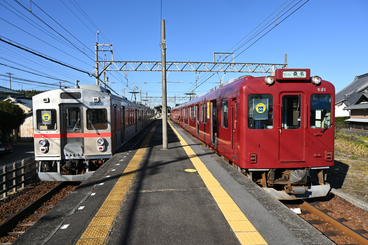 現在でも、南大阪線の中古車と狭軌改造された名古屋線の中古車が主に使用されています。2019年より、東急電鉄から7700系を導入しており、順次置き換えられる予定です。近鉄時代には北勢線に目を奪われ、結局行かずじまいで、近鉄の中古車の置き換えが始まった2019年になって、やっと訪問しました。