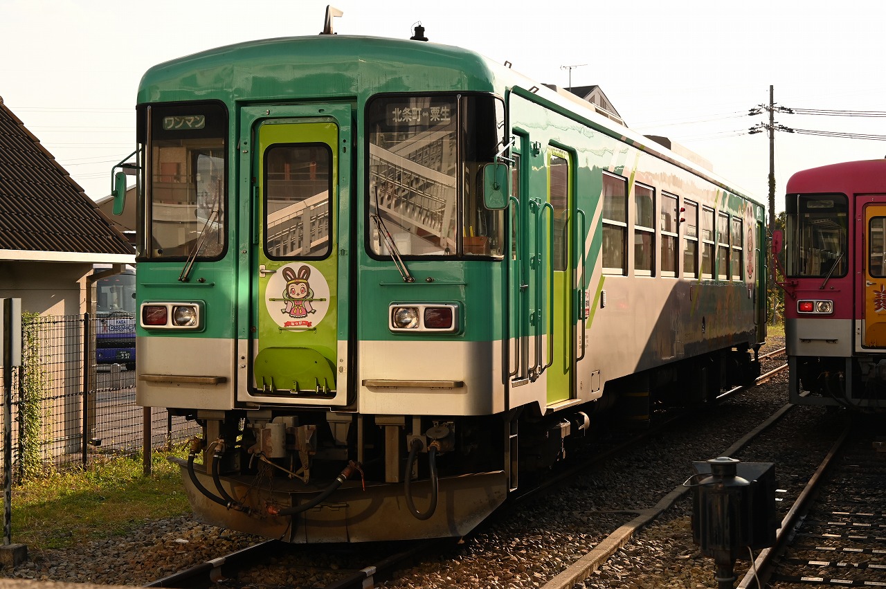 2022年から運用を開始した元JR東日本五能線で走っていたキハ40535。車番、塗装はそのままですが、トイレは撤去されています。法華口駅の列車交換設備新設に伴い、導入されました。