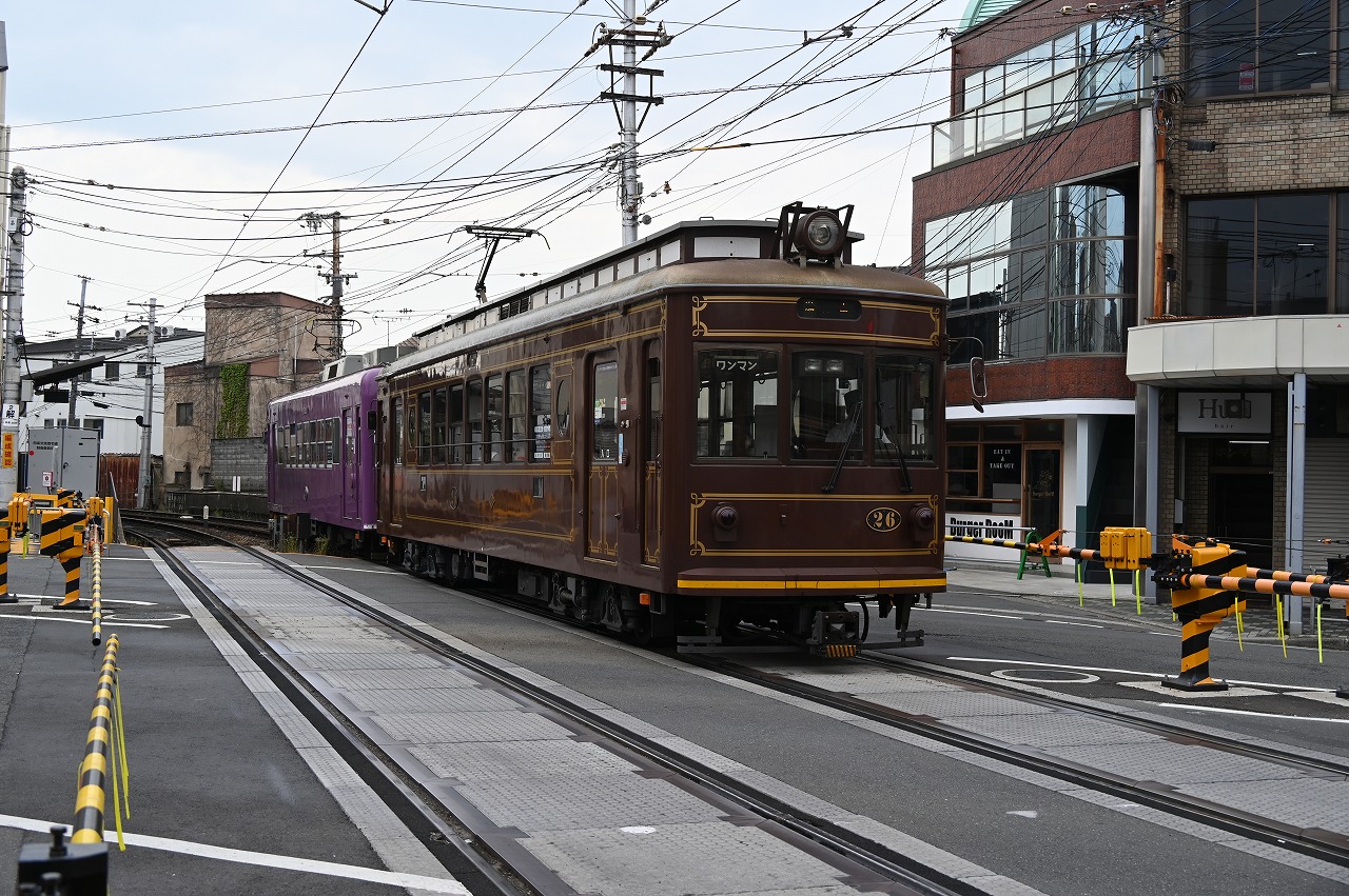 かっては福井と京都に路線を持っていましたが、福井の路線は2002年に第三セクターのえちぜん鉄道に移管し、京都の叡山線も1986年に叡山電鉄として分離し、この嵐山線・北野線合計11kmと叡山ケーブル、ロープウェイ計1.8km合計12.8kmのみとなっています。