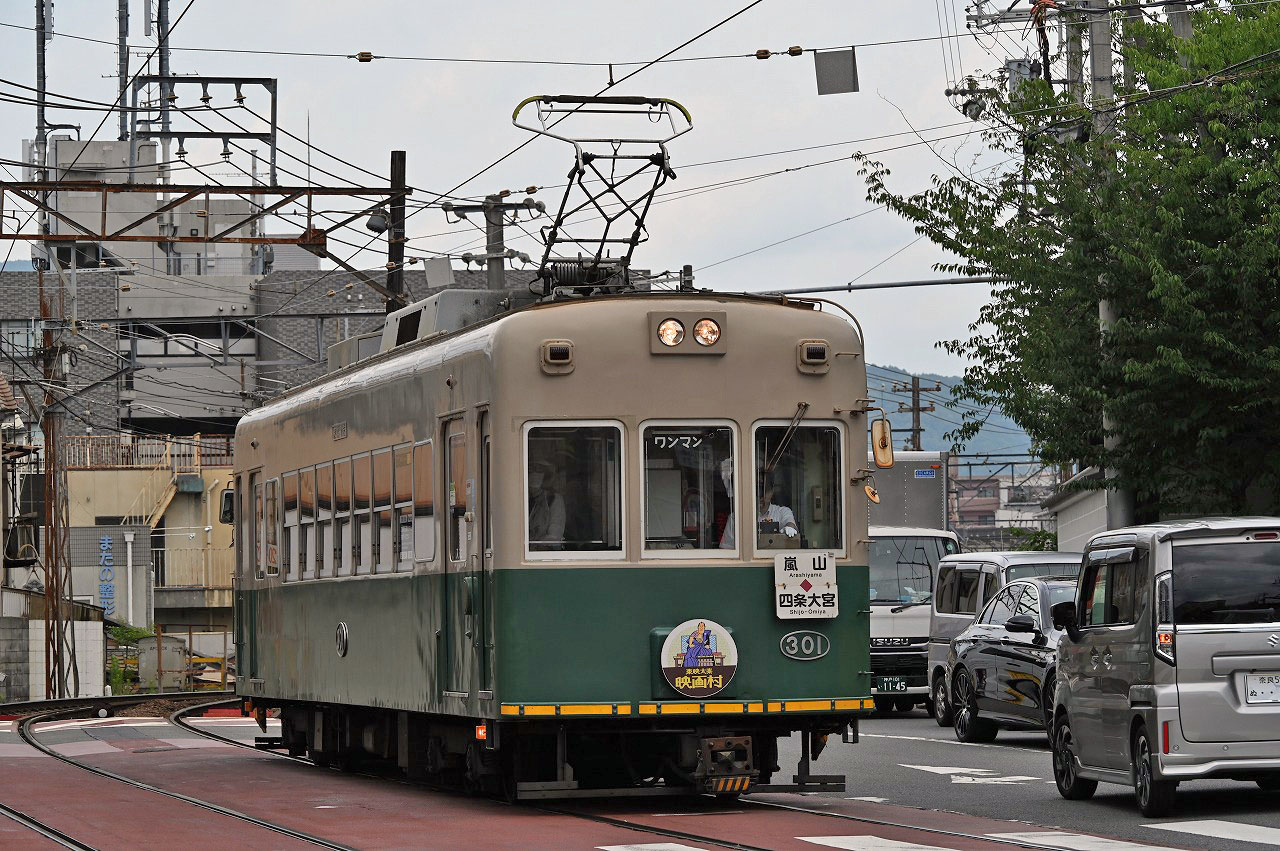 1975年までトロリーポール集電だったことでも有名です。今でもレトロな雰囲気は残っていますが、嵐山への観光路線として盛業中で、2025年には新車の導入も始まっています。