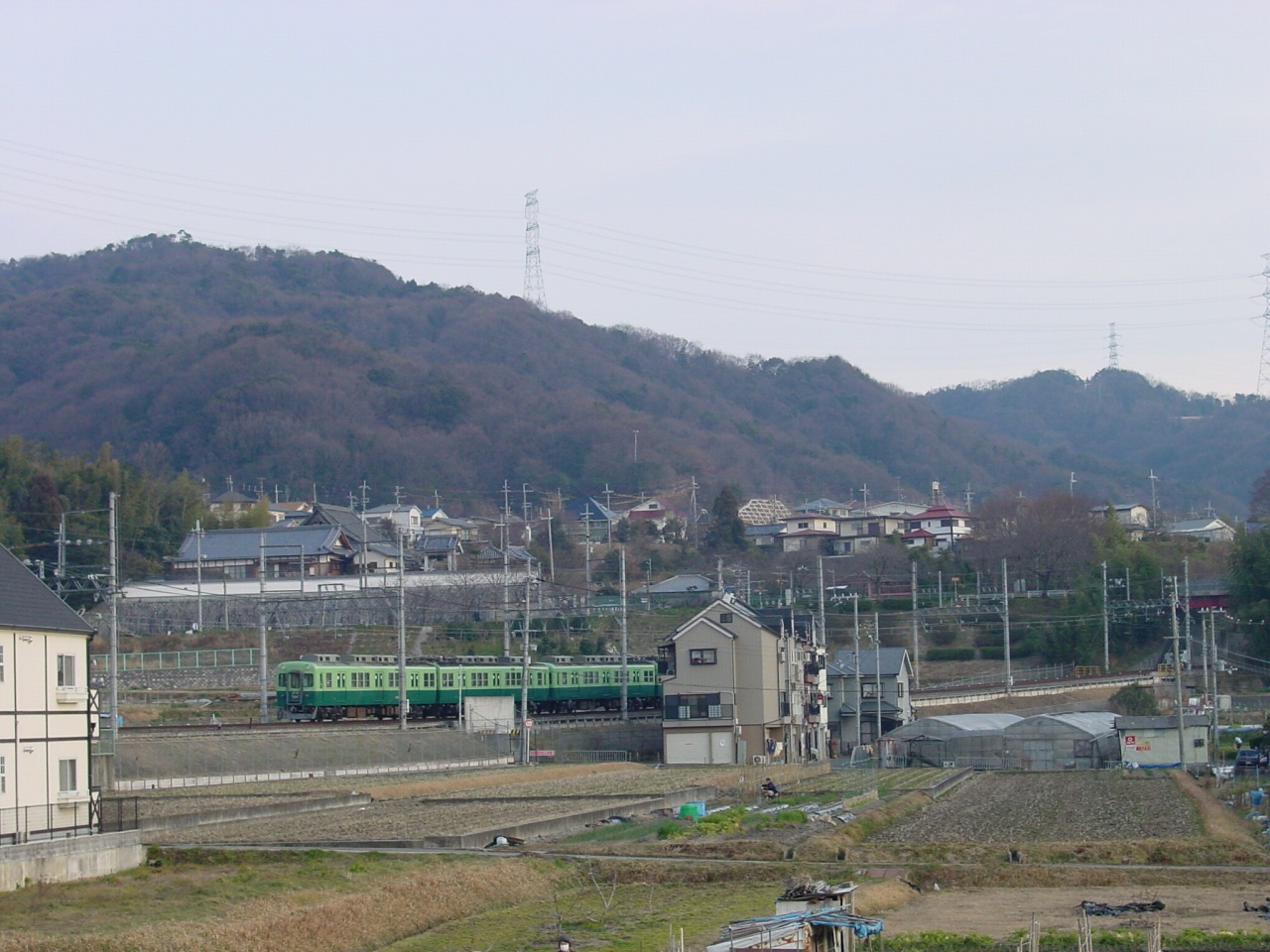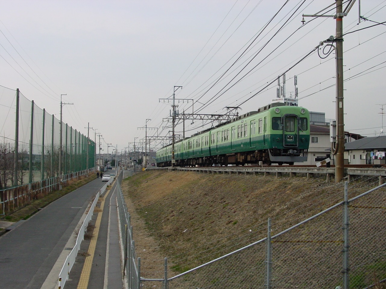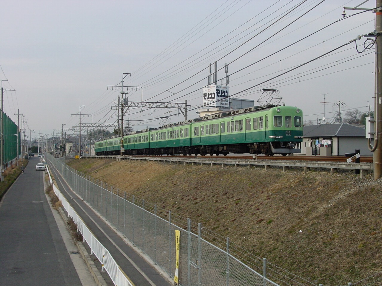 1963年川崎重工製。かっての京阪特急用のエースも晩年は3扉化され、交野線で過ごしました。1970年に1001を撮影した場所です。2006年廃車。