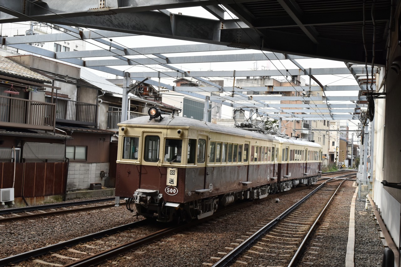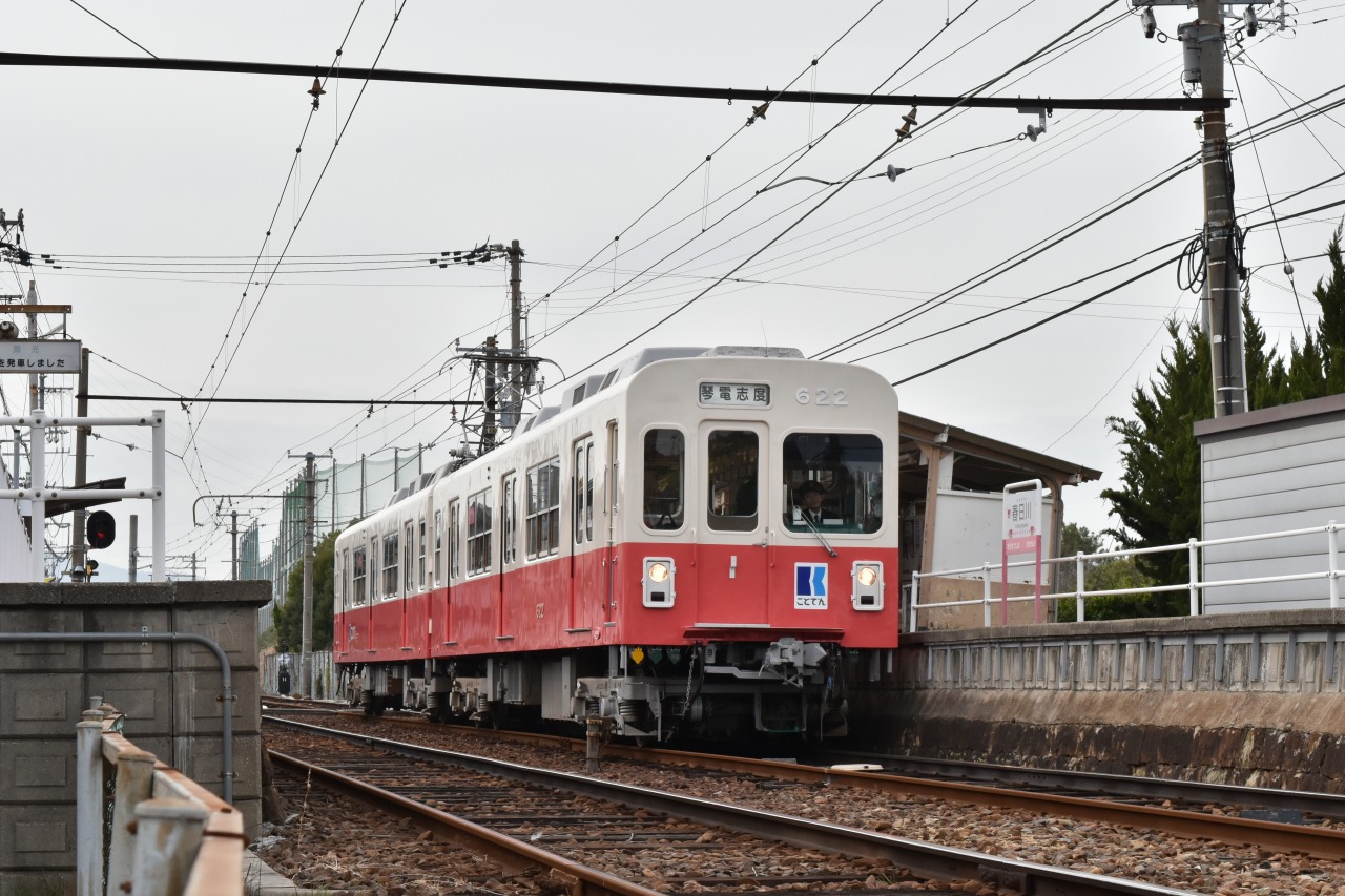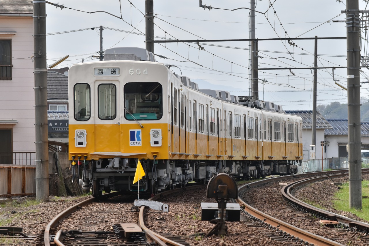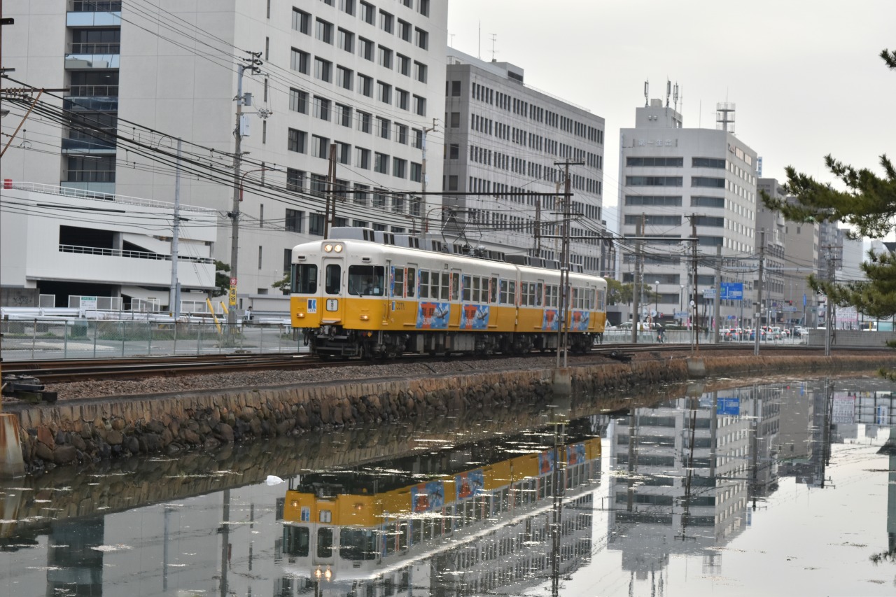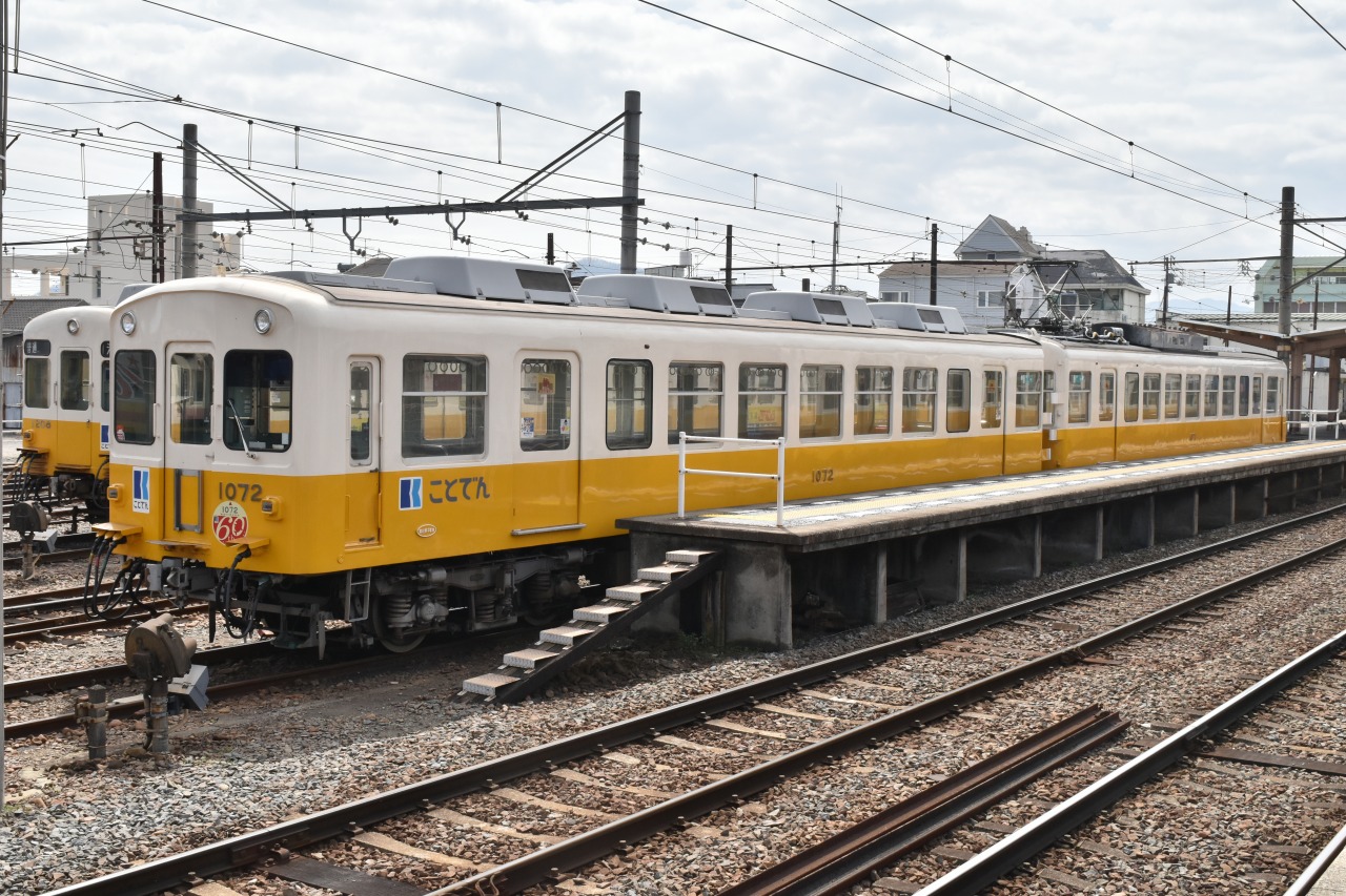 1957年東急車輛(現総合車両製作所)製の元京浜急行600形608+605。京浜急行時代はクロスシートで特急運用についていました。琴電ではロングシートに改造されています。ほとんど定期運用から外れており、イベント運用が多いようです。