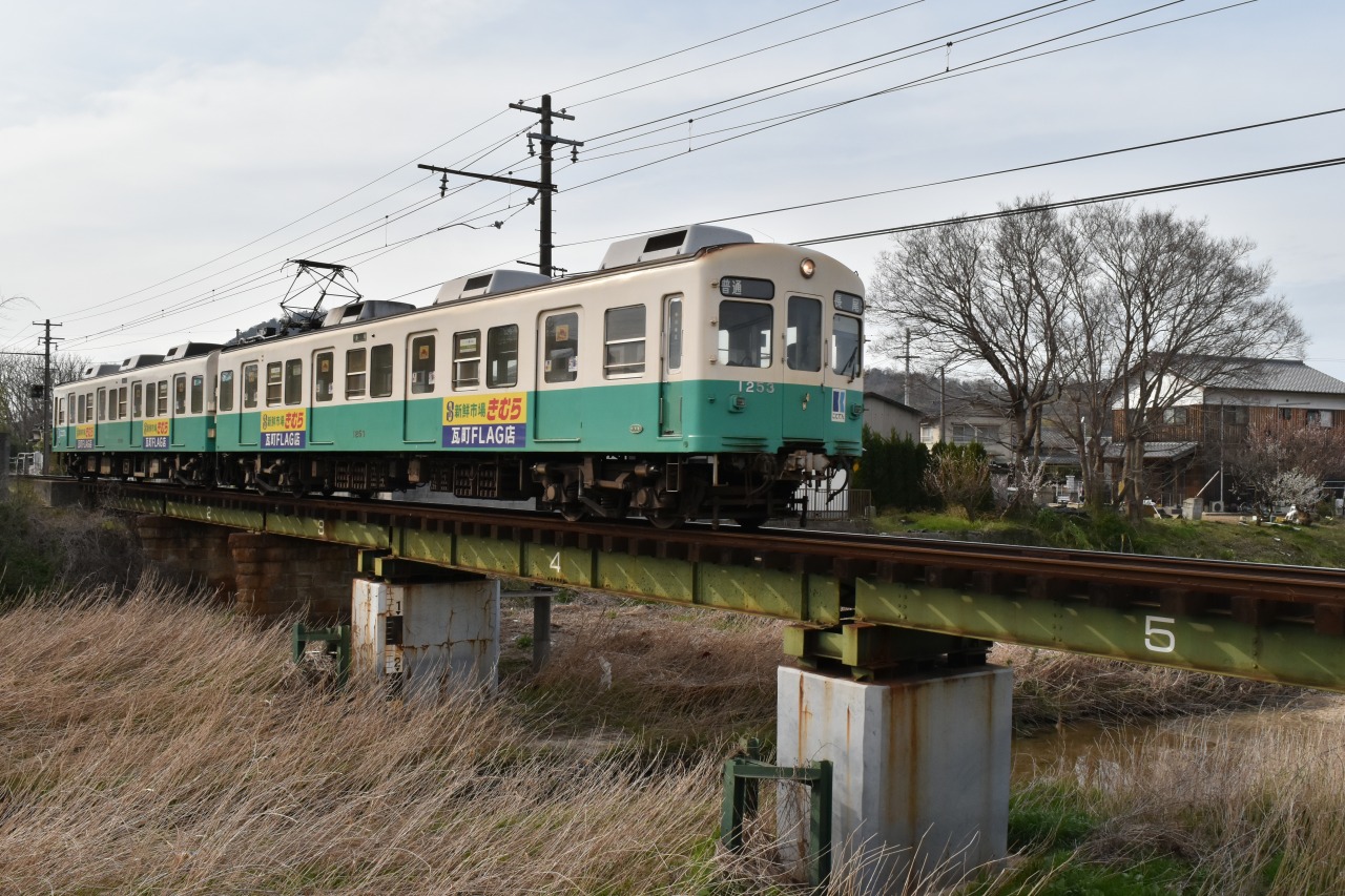 1978年東急車輛(現総合車両製作所)製の元京浜急行1000系デハ1243+デハ1250。京浜急行1000系の最終グループ。1080形とは外観は同じですが、空気バネ台車を履いており、制御機器も違うため混結できず、別形式となり、全車長尾線で運用されています。