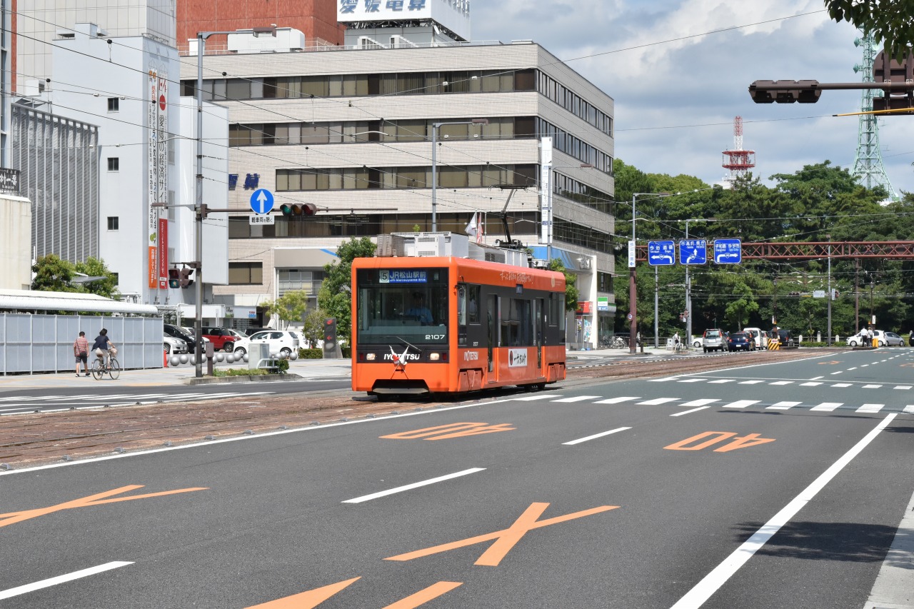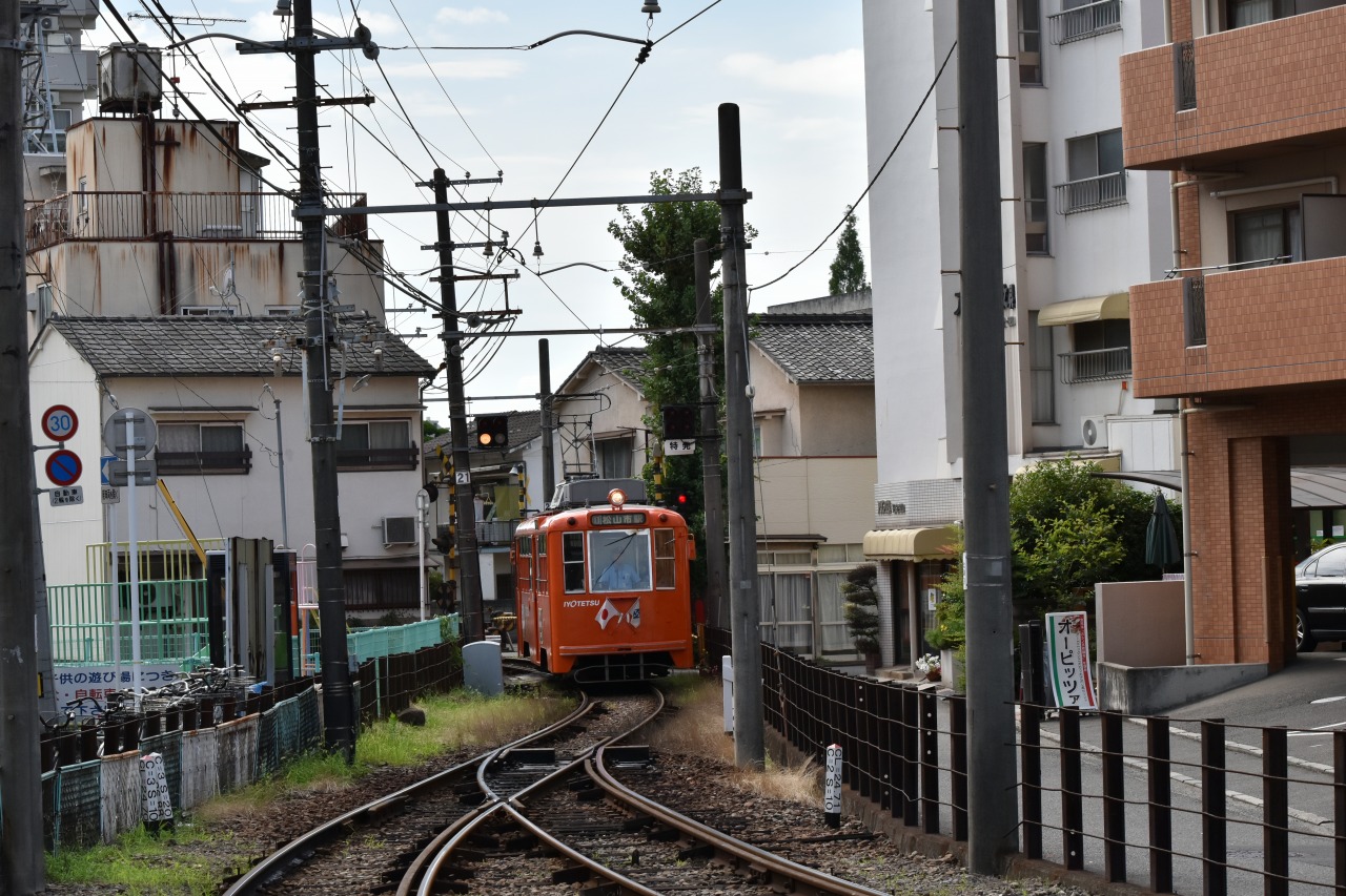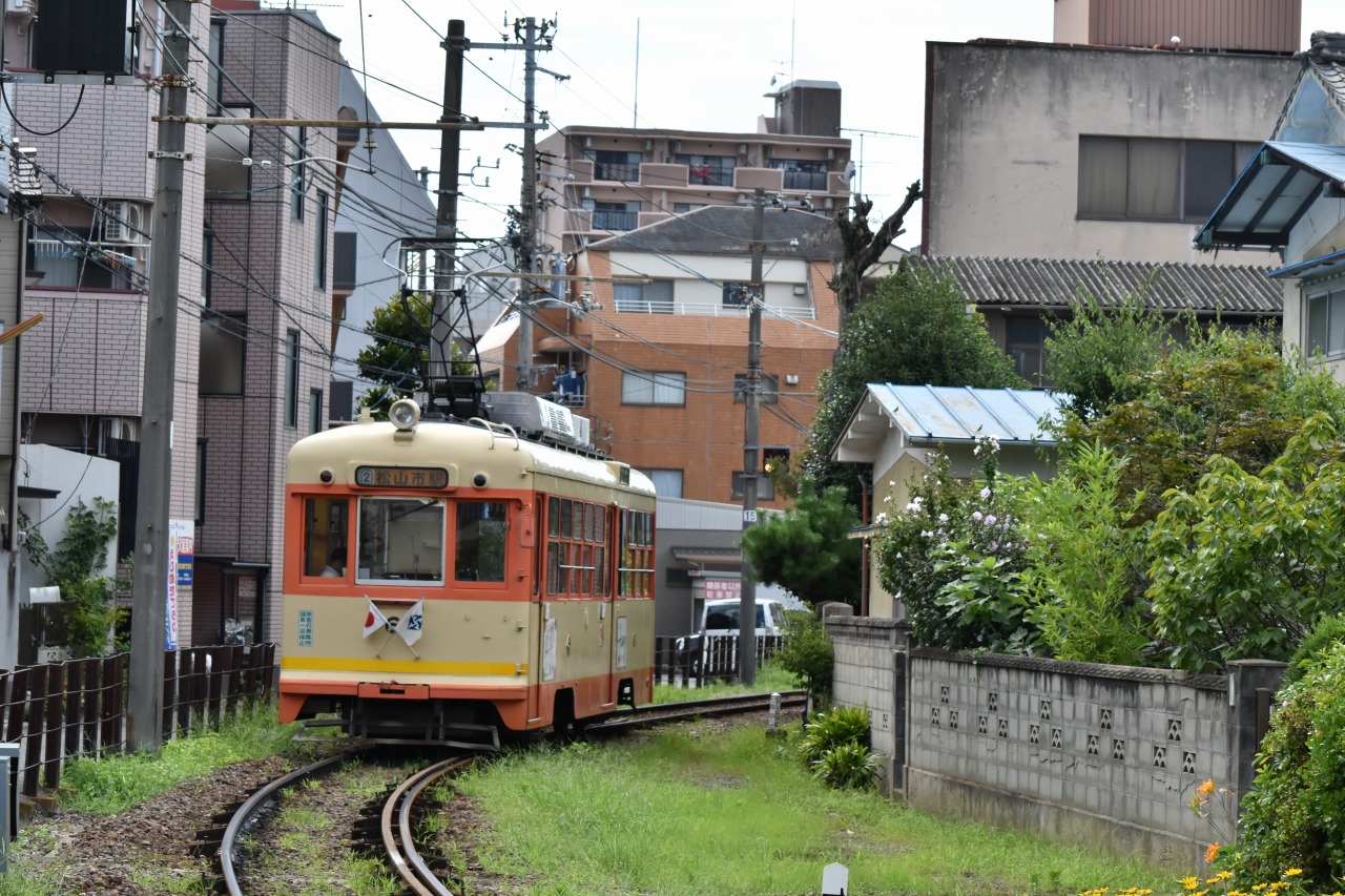 1951年ナニワ工機(現アルナ車両)製。2022年現在で一般運用についている路面電車では熊本市電1060形1063と並び現役最古参と思われます。