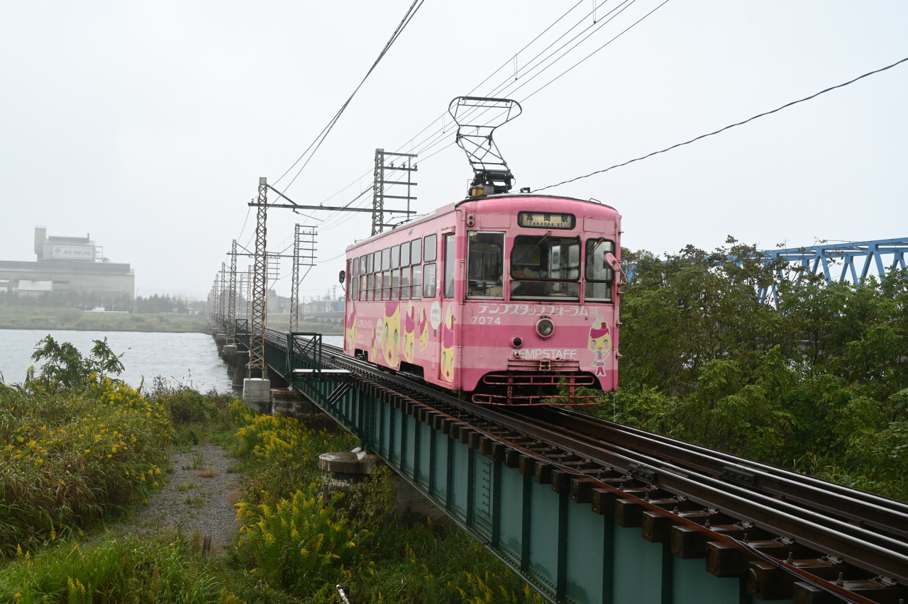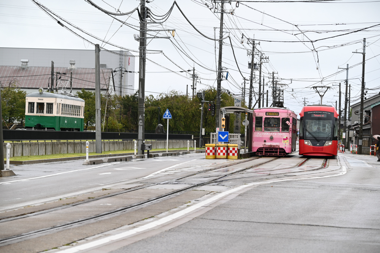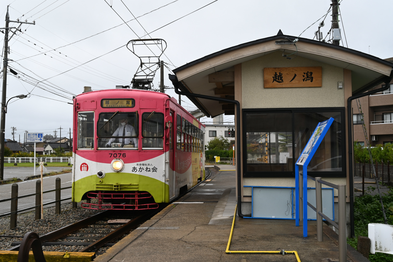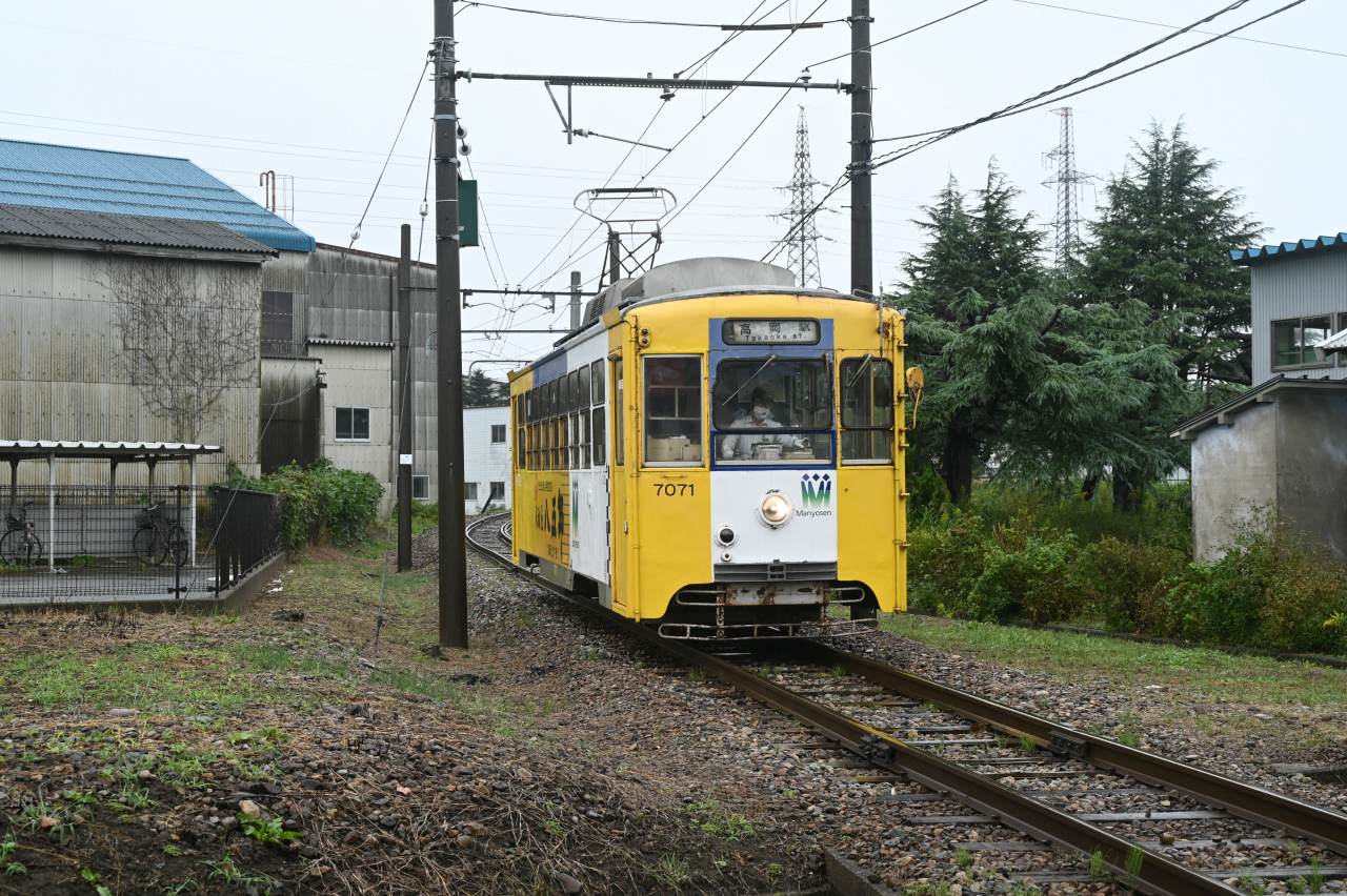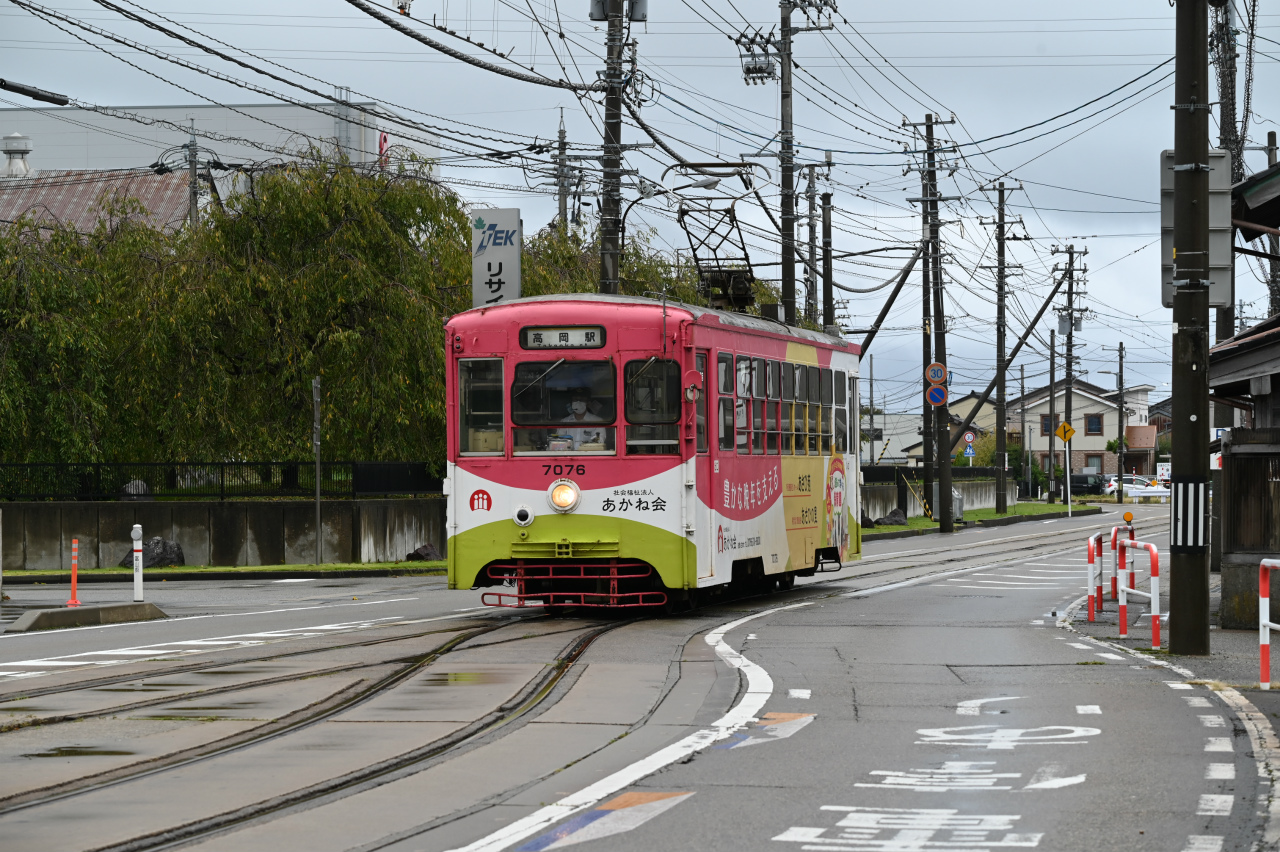 2001年に加越能鉄道が路線の廃止を打ち出し、高岡市と新湊市(現射水市)が中心となって第三セクター「万葉線株式会社」を設立、2002年に全線を移管しています。「万葉線」は奈良時代に「万葉集」の編纂に携わった大伴家持が越中国守として沿線の伏木に赴任したことにちなみます。2004年には低床車「アイトラム」MLRV1000形を導入。2014年には高岡駅前から高岡駅ビルの中に100m延長されています。1974年以来47年ぶりの撮影です。
