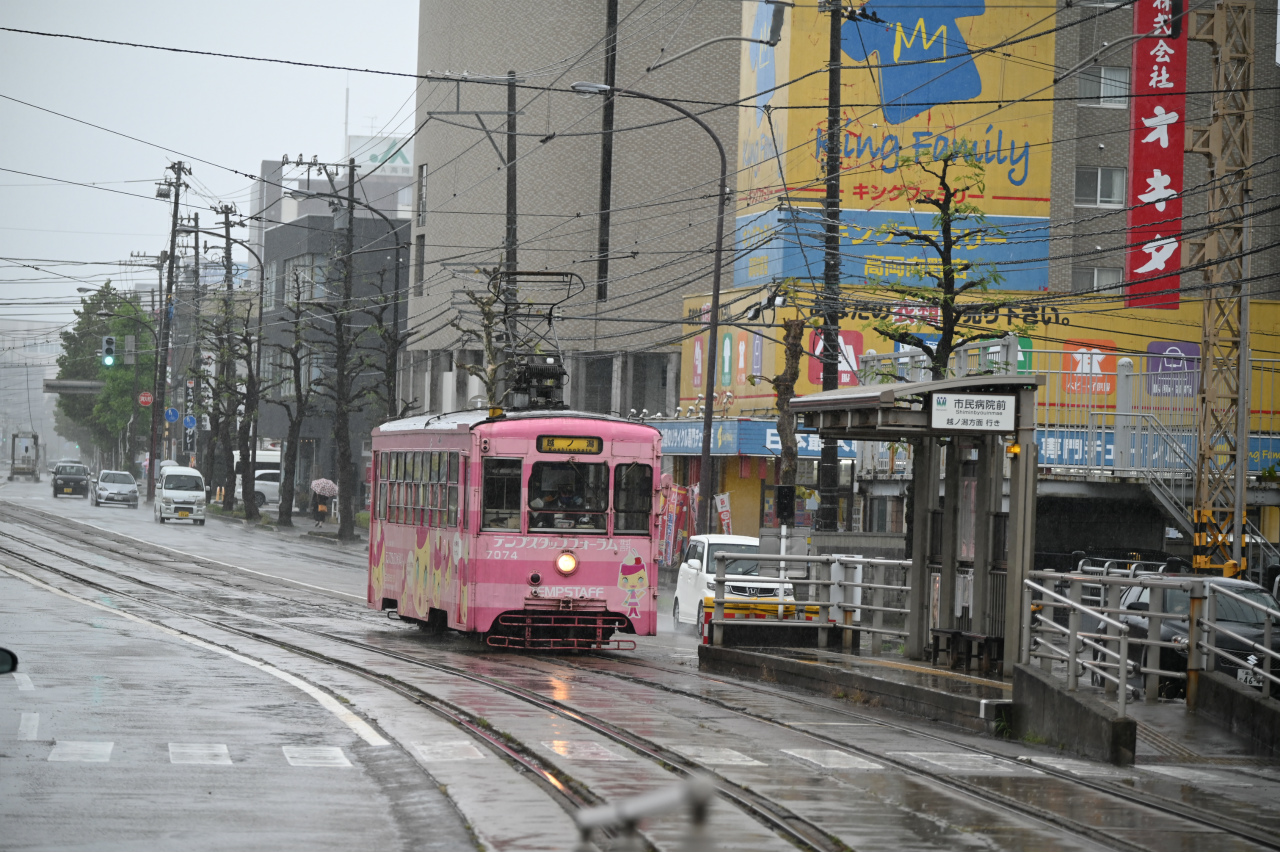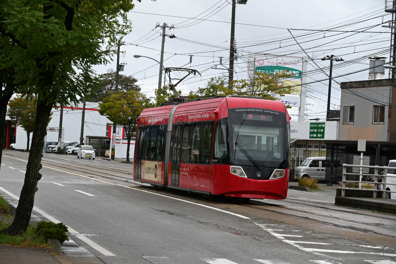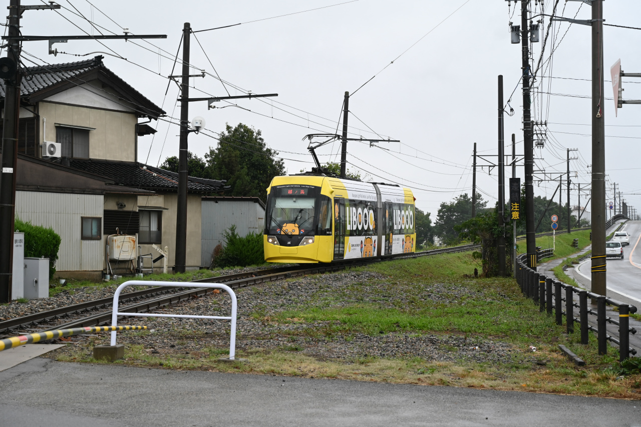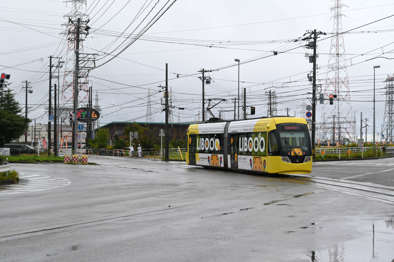 2009年新潟トランシス製のLRV。専用軌道を降りてきたところです。