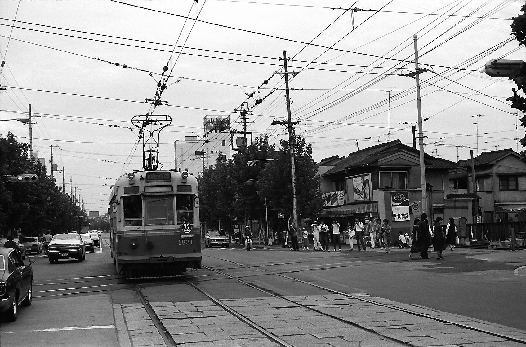 1900形1931 22番系統。今出川線の廃止後、外周一週系統となり、全線廃止まで存続しました。1931は1900形のラストナンバーです。廃止後は広島電鉄に譲渡され1915。 1978年9月24日撮影 叡電前 |