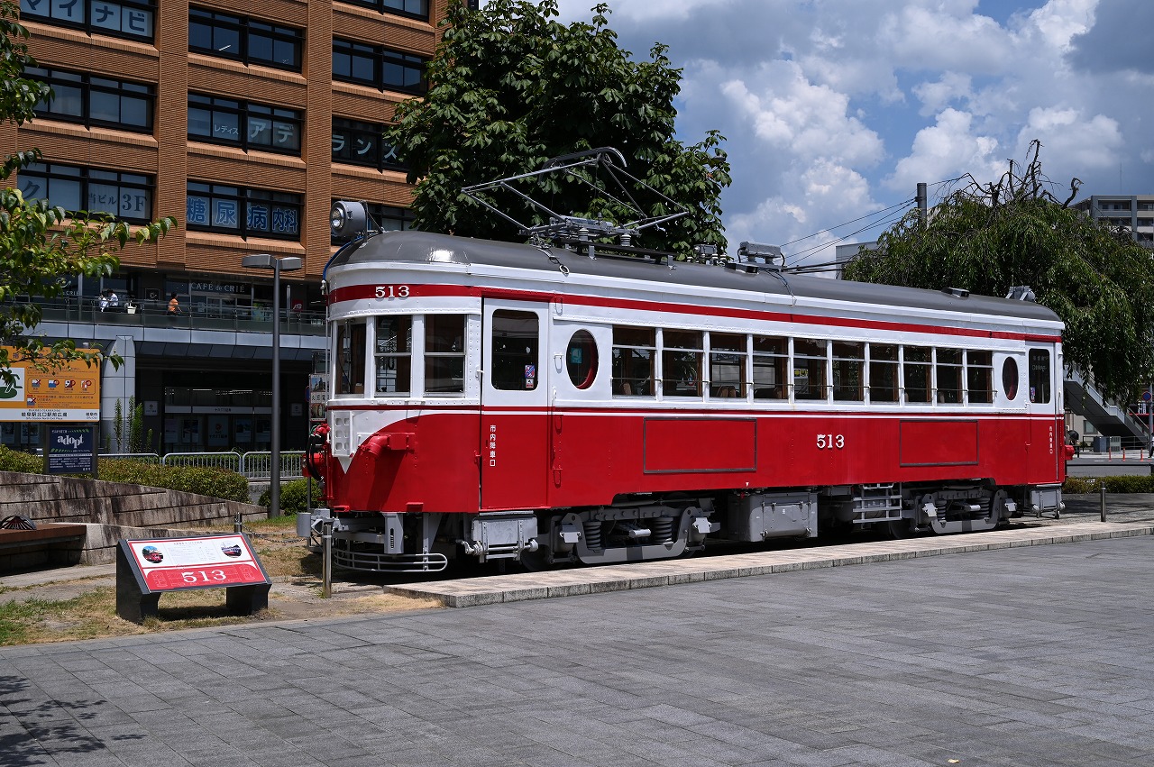 JR岐阜駅前北広場にモ510形513が保存されています。 岐阜市の文化財に指定され、丸窓電車として親しまれています。 |