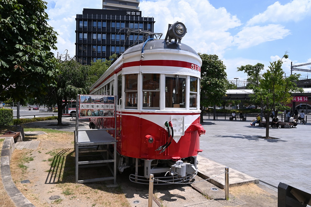 | JR岐阜駅前北広場にモ510形513が保存されています。 岐阜市の文化財に指定され、丸窓電車として親しまれています。 |