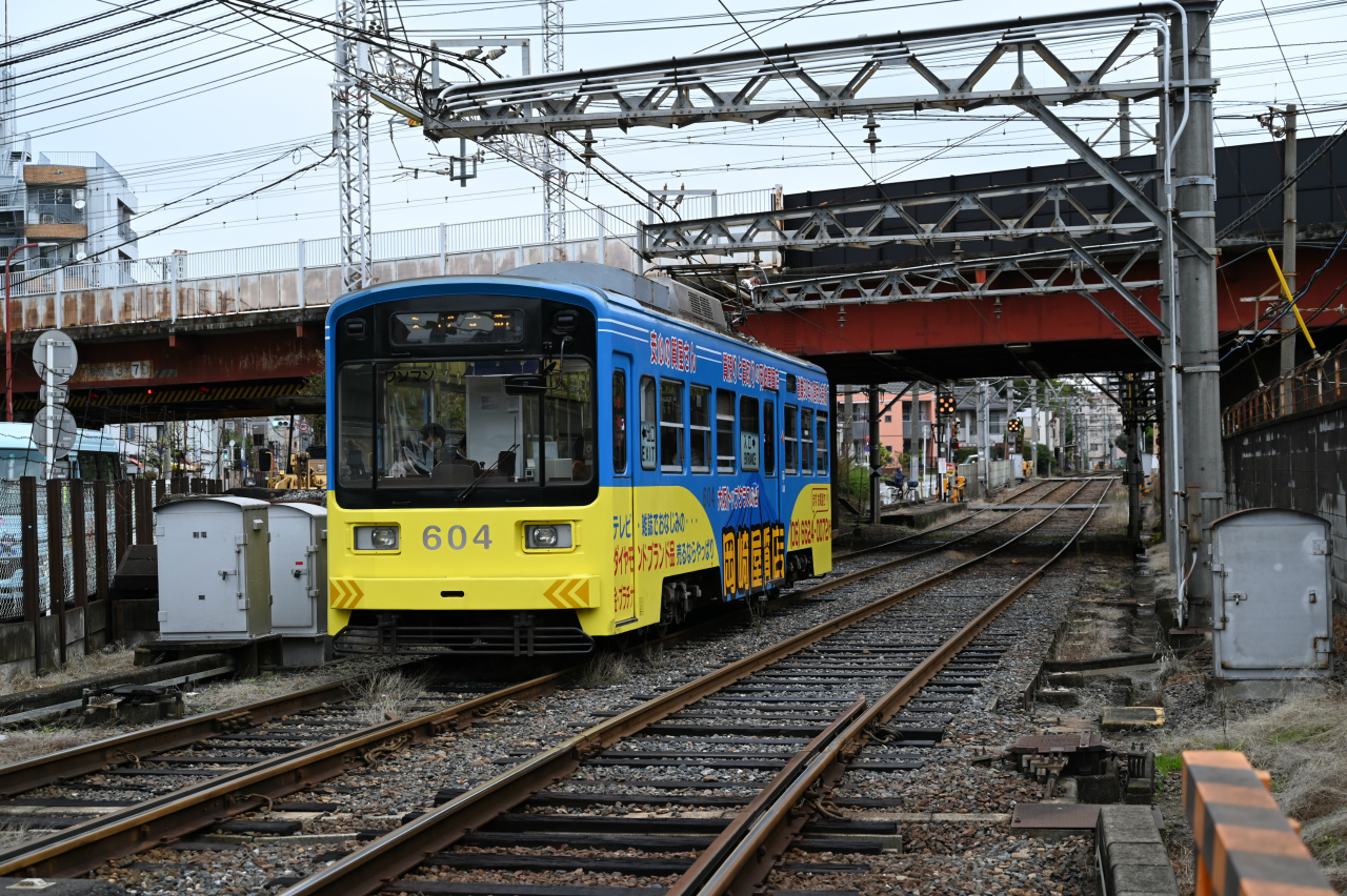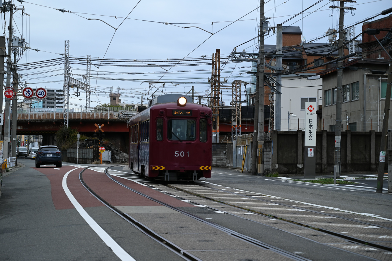 1963年帝国車輛(現総合車両製作所)製。このあたりは昔の面影があります。旧宮ノ下電停のホームも残っています。