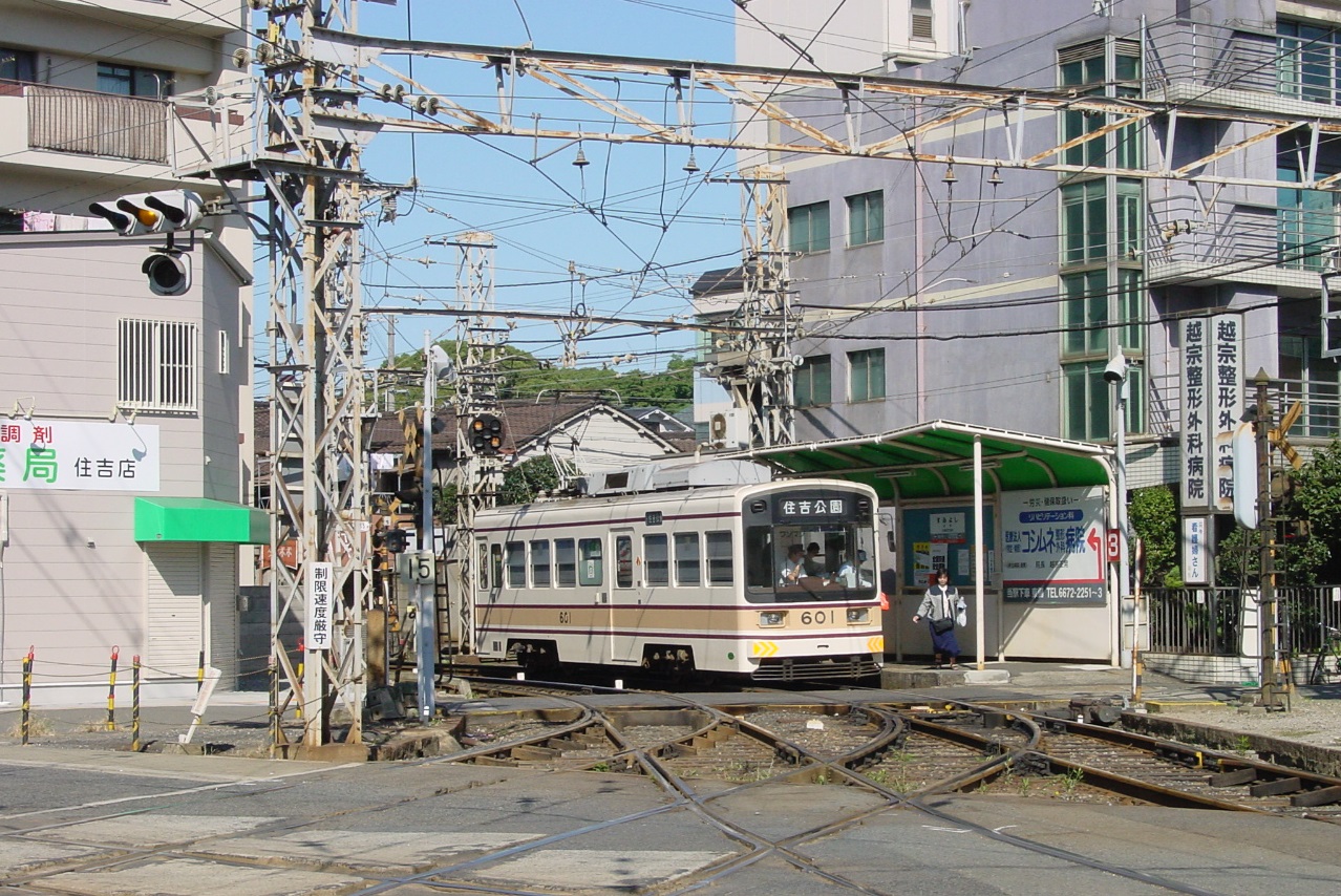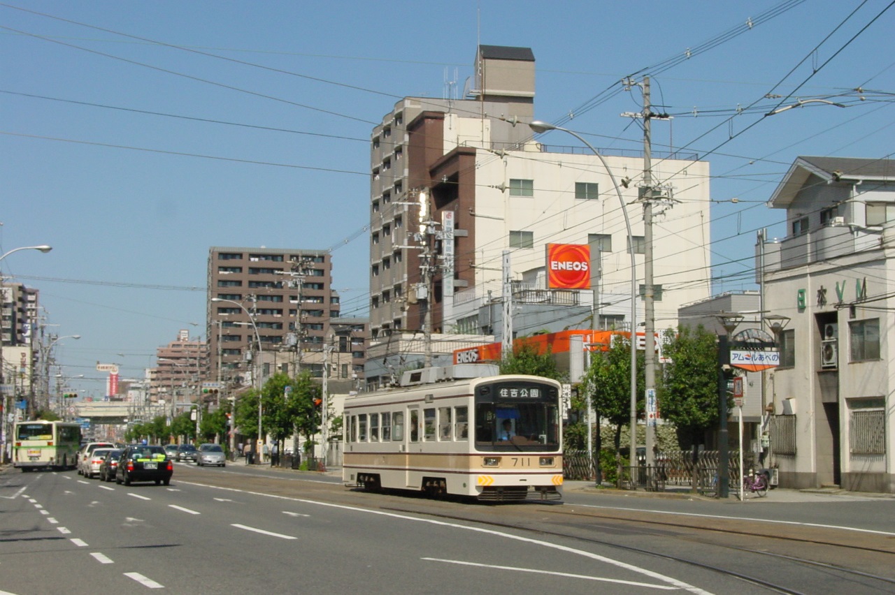 天王寺駅前から住吉公園まで4.6㎞の区間でしたが、2016年に住吉~住吉公園0.2㎞が廃止され、住吉までの4.4㎞となりました。 その後、浜寺駅前までの直通は全て上町線からの直通となっており、運行本数も多く、こちらが阪堺電気軌道のメインルートになっています。2001年の撮影と2022年の撮影を並べてあります。