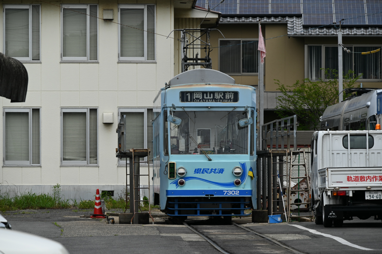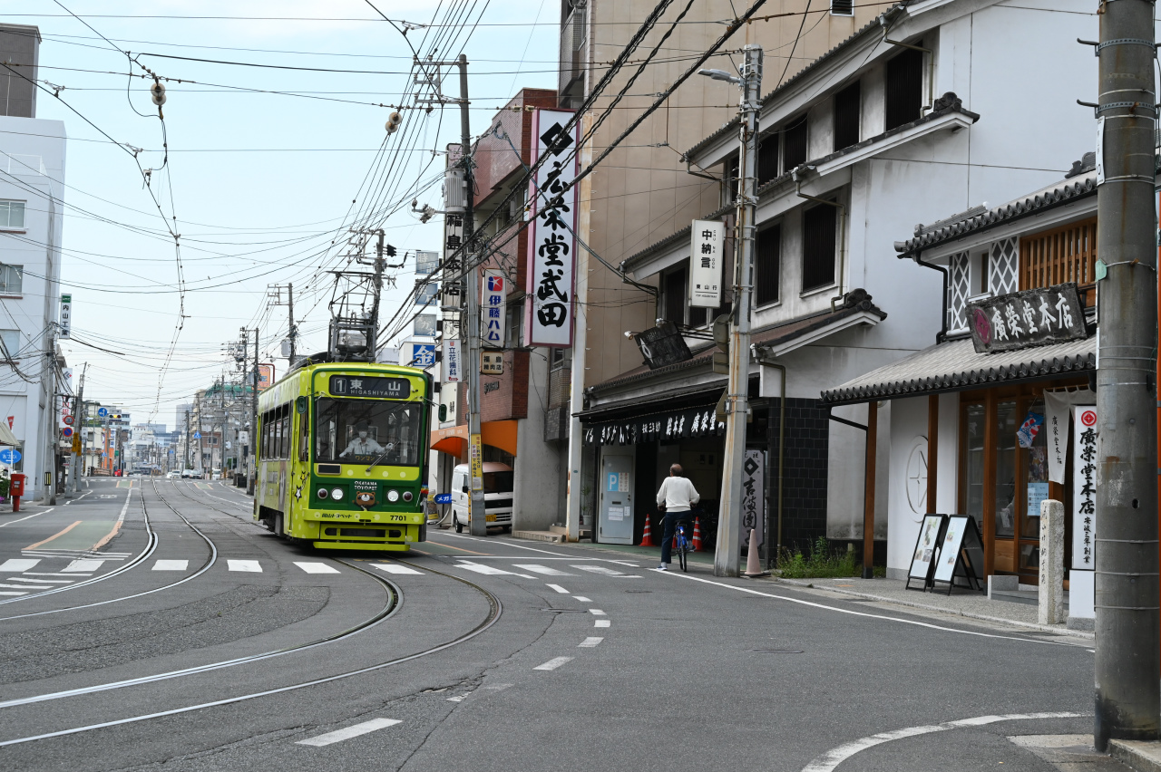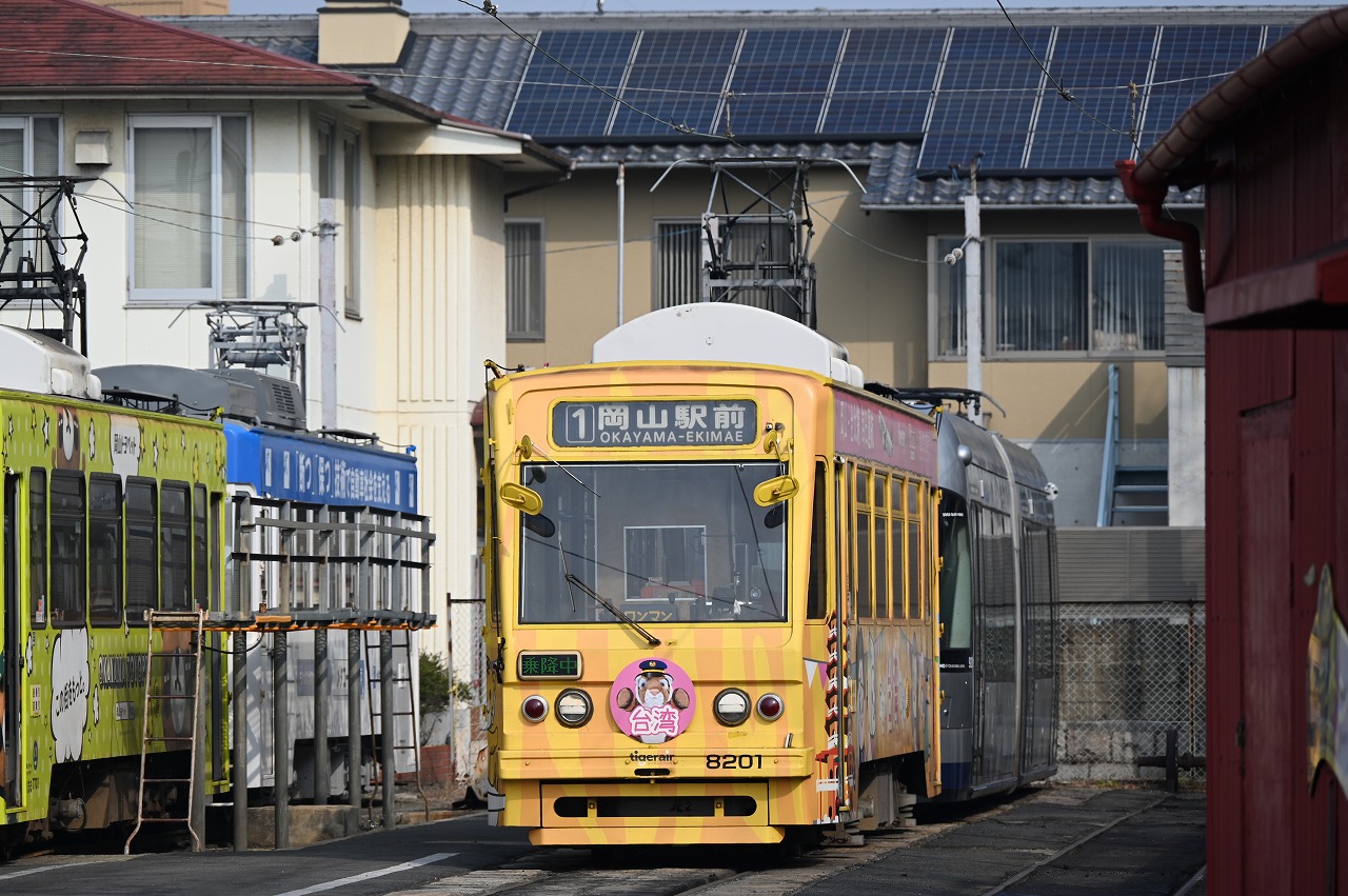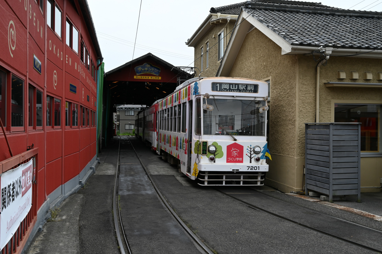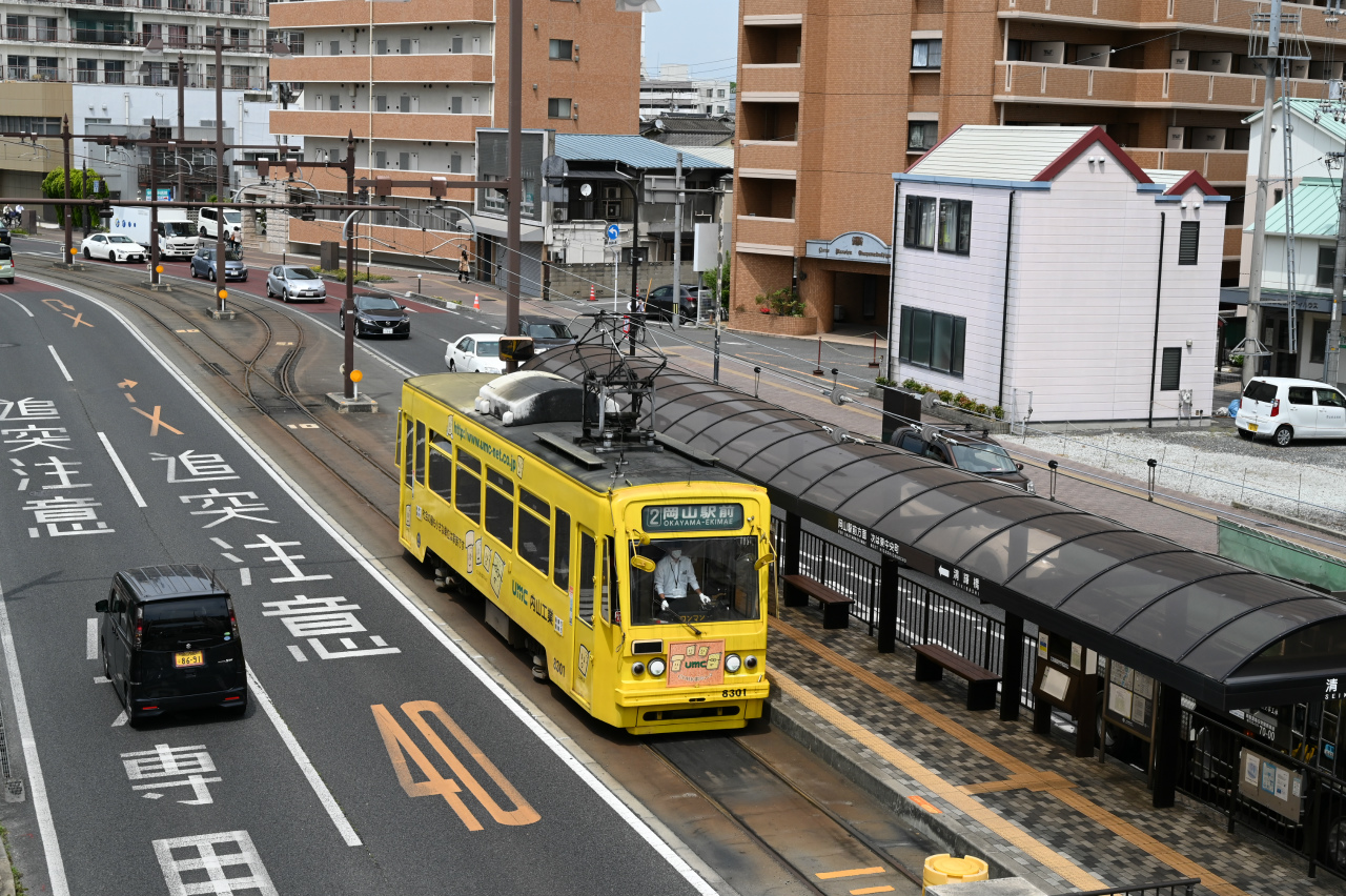 1984年以来38年ぶりの撮影です。最新鋭の超低床車も導入されていますが、主力は旧型車の機器を流用した車両で、「石津式」パンタグラフも健在です。元東武日光軌道線の3000形も2両健在。2019年からは「チャギントン」電車も導入されています。 また、延長4.6㎞の日本一短い路面電車ですが、岡山駅へ乗り入れの他、路線延長の計画もあるようです。ここの車両の付番は、上2桁が会社創業年(1910年)からの竣工年までの年数を表しています。特に近年は同じ形式を何年か経って増備することがあるため、形式と付番が一致しない車両が増えています。