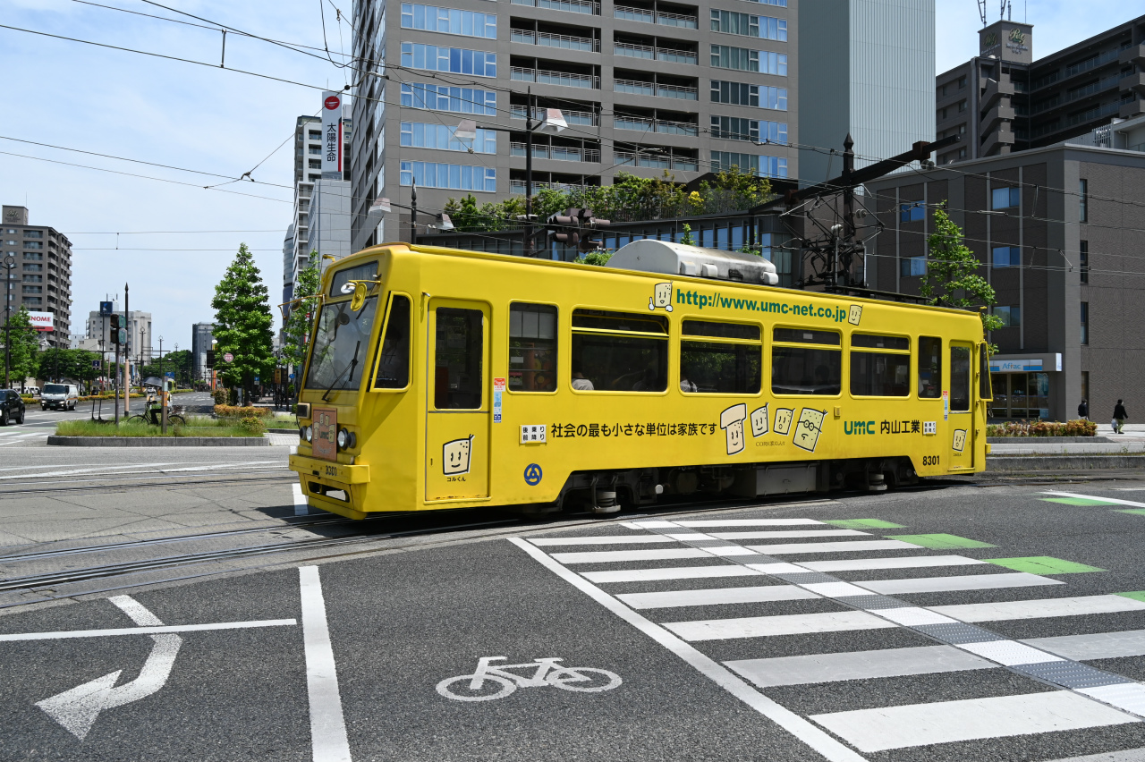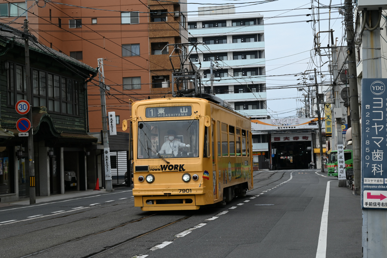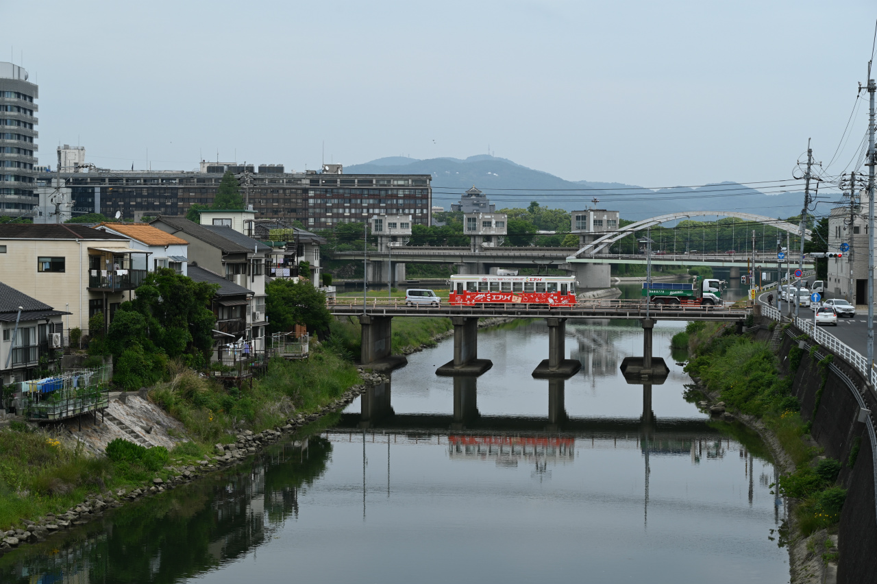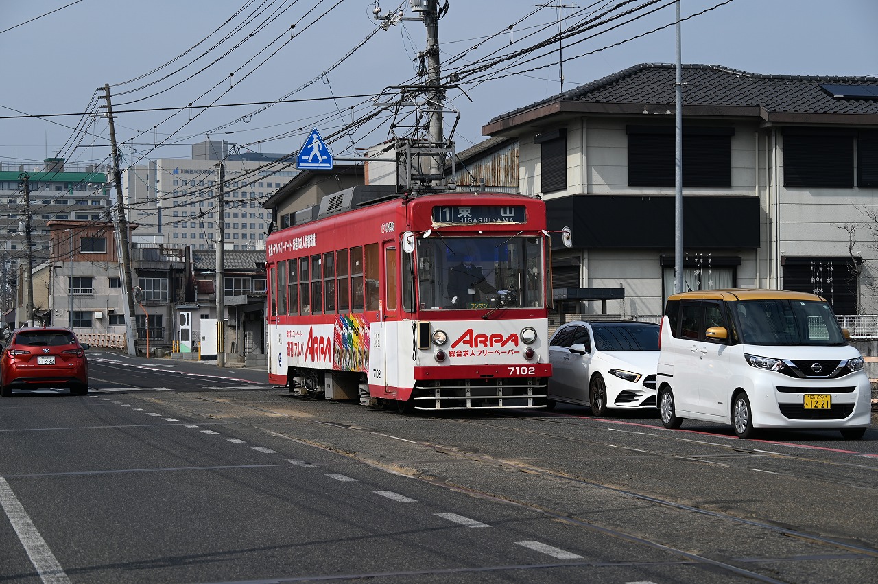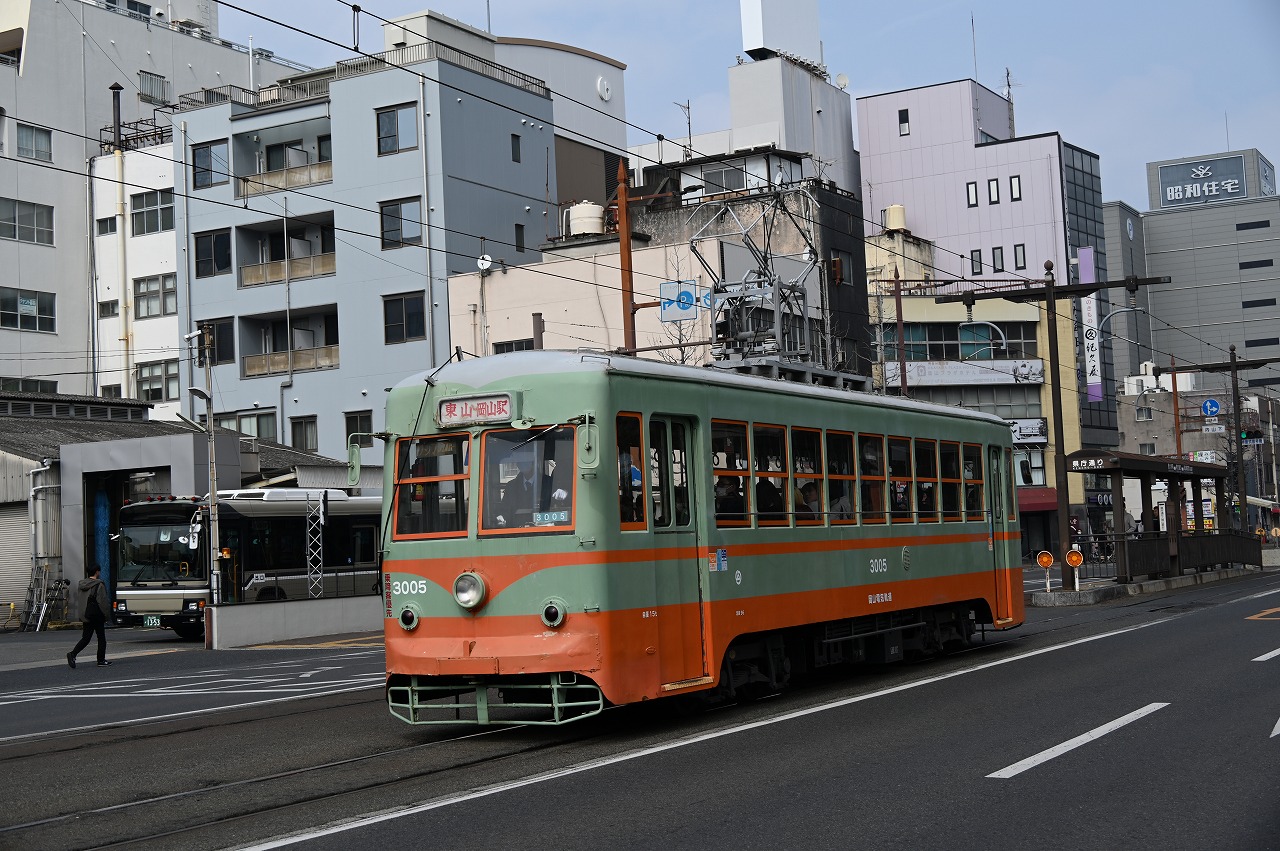 1984年以来38年ぶりの撮影です。最新鋭の超低床車も導入されていますが、主力は旧型車の機器を流用した車両で、「石津式」パンタグラフも健在です。元東武日光軌道線の3000形も2両健在。2019年からは「チャギントン」電車も導入されています。 また、延長4.6㎞の日本一短い路面電車ですが、岡山駅へ乗り入れの他、路線延長の計画もあるようです。ここの車両の付番は、上2桁が会社創業年(1910年)からの竣工年までの年数を表しています。特に近年は同じ形式を何年か経って増備することがあるため、形式と付番が一致しない車両が増えています。