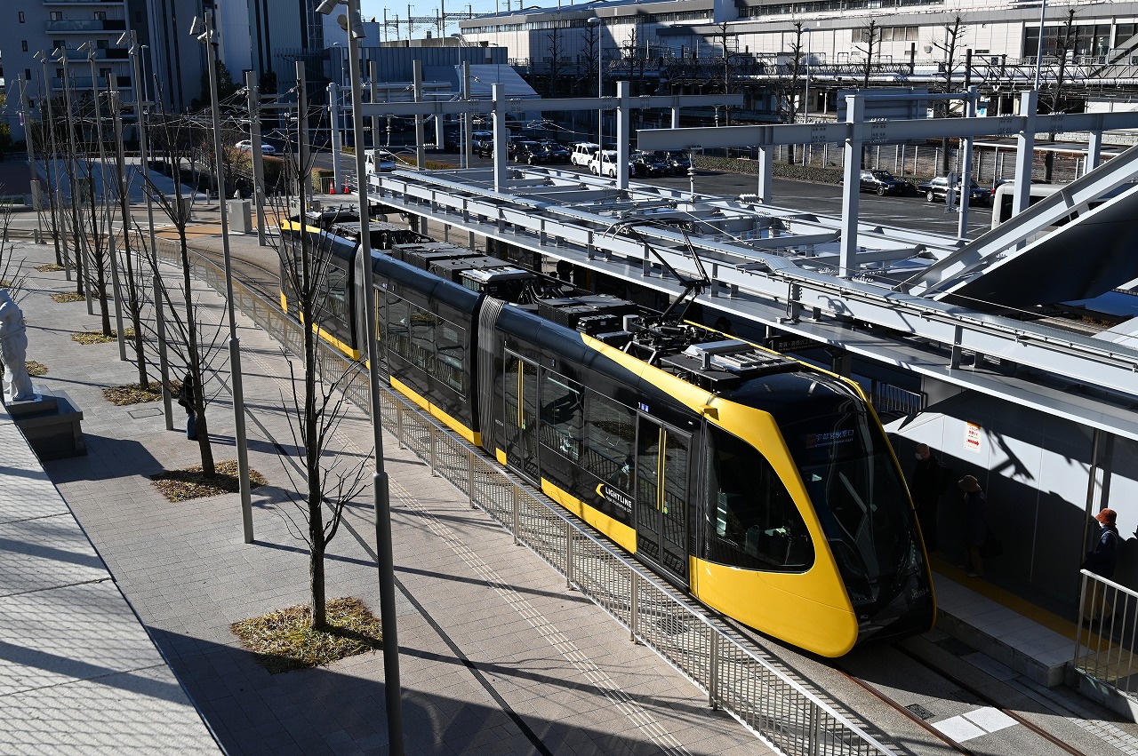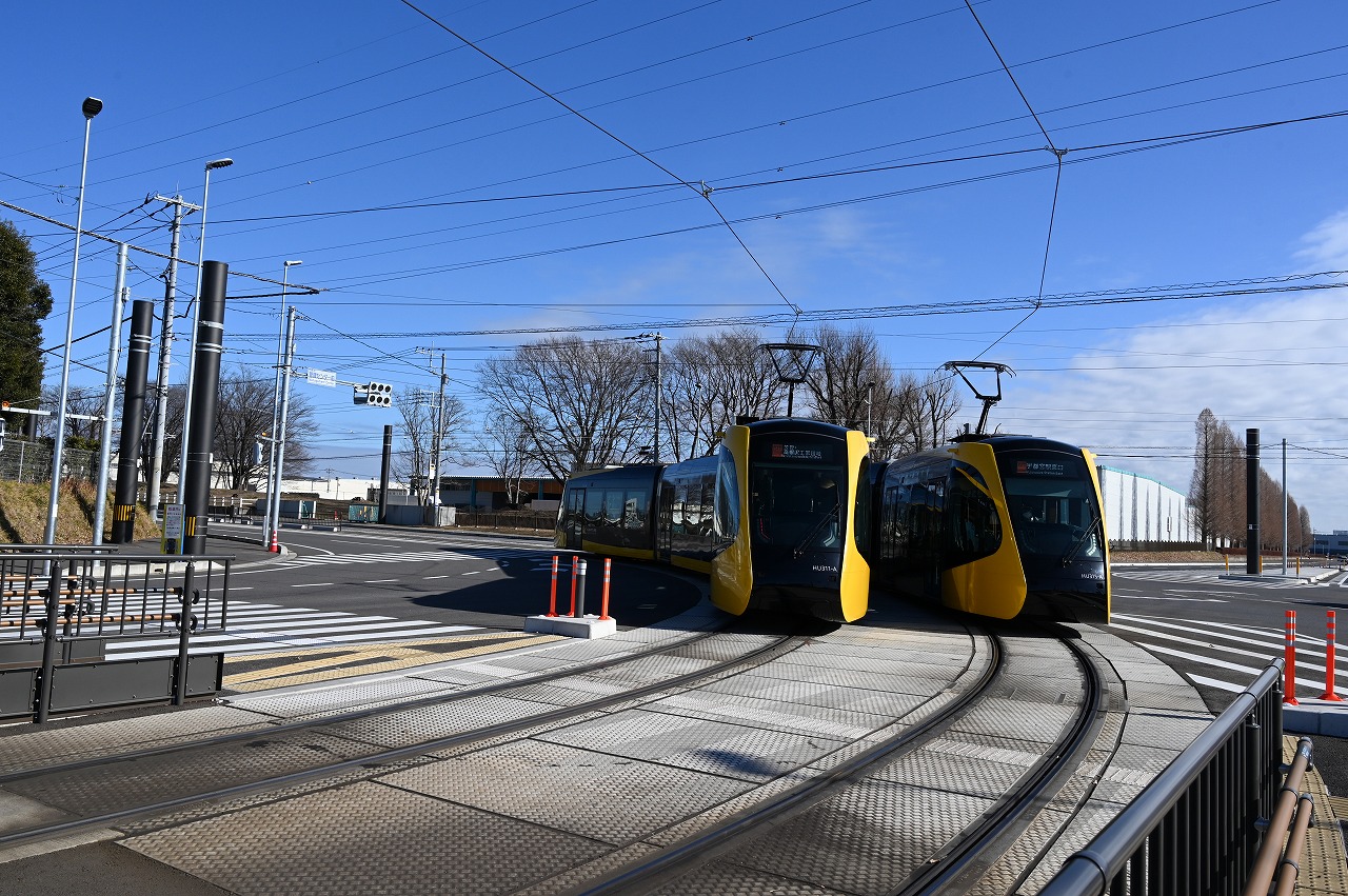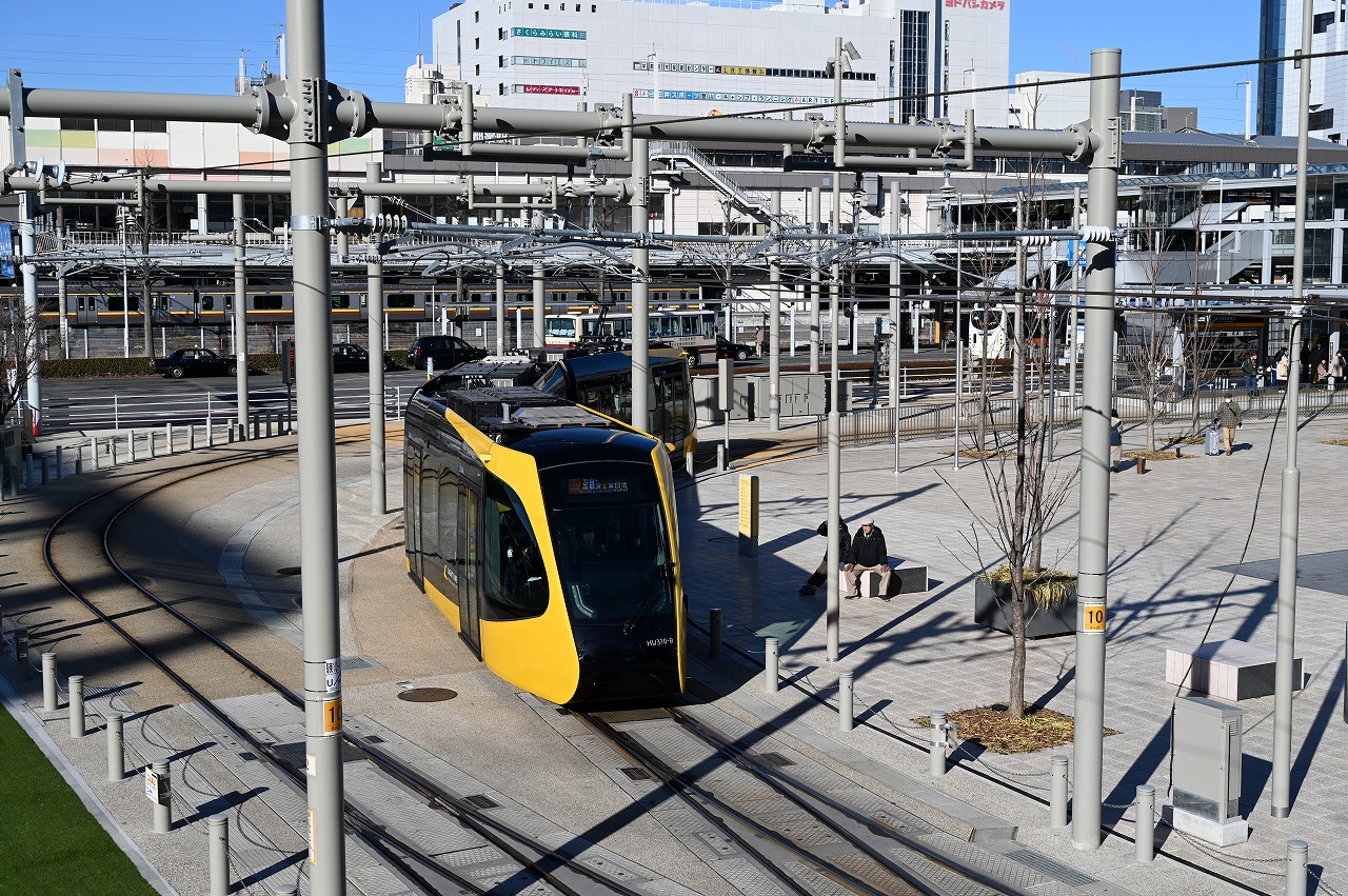 2023年8月に開業した第三セクターの路面電車(Light Rail Transit)です。宇都宮駅東口~芳賀・高根沢工業団地14.5kmを結んでいます。新規の路面電車としては、1948年開業の富山地鉄伏木線(のち加越能鉄道高岡市内線→万葉線)以来75年ぶりです。かっては邪魔者扱いされていた路面電車でしたが、最近では見直しの動きが広がっており、豊橋鉄道、富山地鉄等で路線が延長されています。宇都宮では郊外に大規模工業団地ができ、通勤時間帯には慢性的な交通渋滞が発生し、対策として全国でも初の事例としてLRTが建設されました。途中に大型ショッピングセンターもあり、予測を上回る利用者数で推移している様です。訪問時も宇都宮駅東口の電停は利用者で混雑していました。