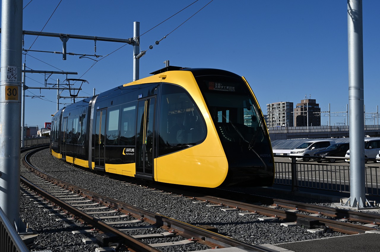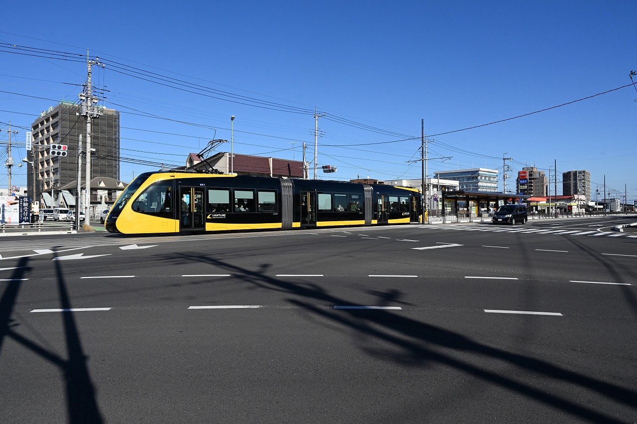 2022年新潟トランシス製の3車体LRV。17編成導入され、LRVの中でも最多の導入数です。同系車に福井鉄道F1000形、2車体の富山地鉄9000形(セントラム)、TLR0600形(ポートラム 元富山ライトレール)、万葉線MLRV1000形、えちぜん鉄道L形、 岡山電気軌道9200形、熊本市電0800型があります。