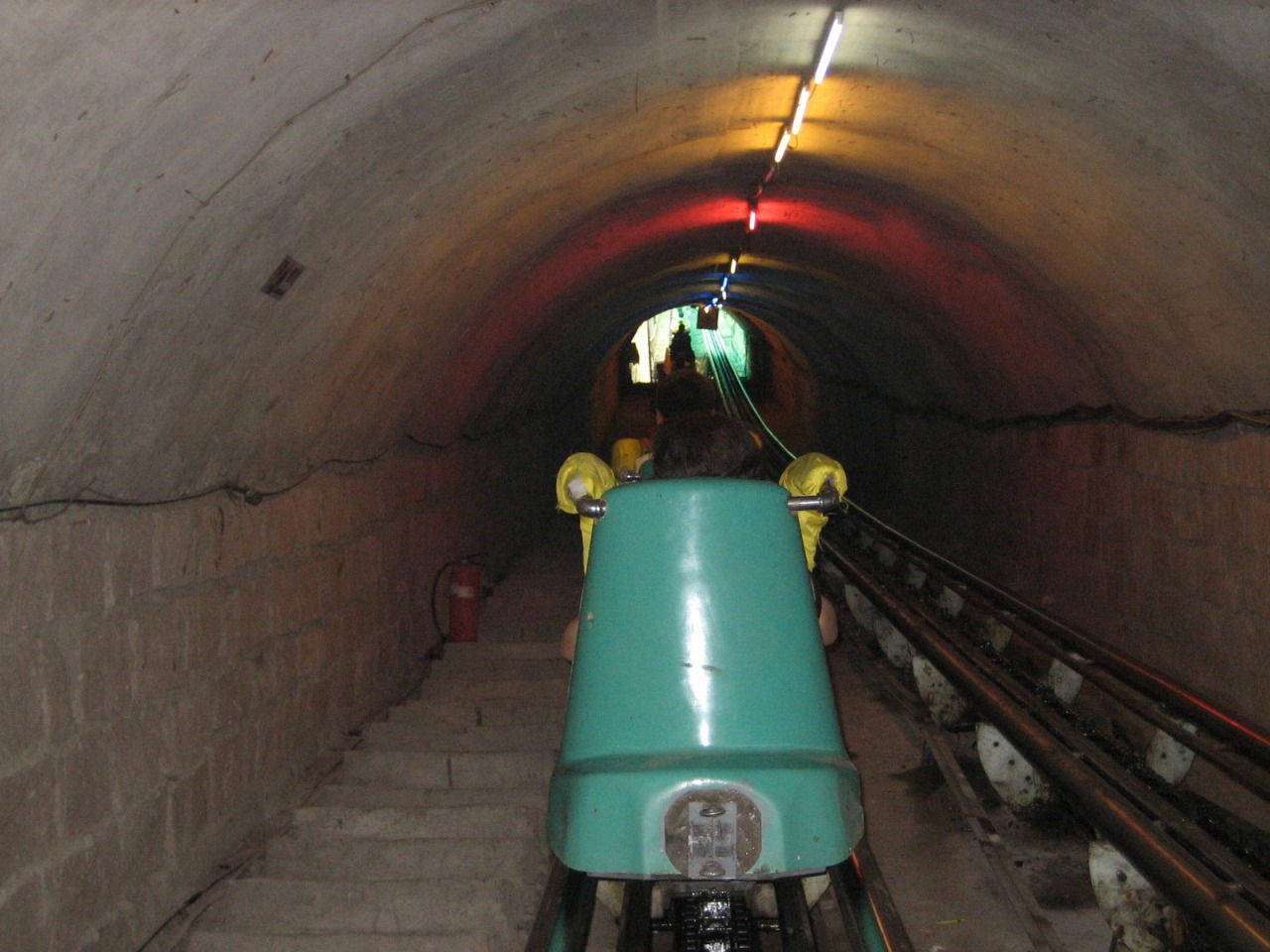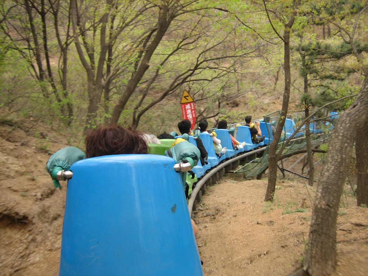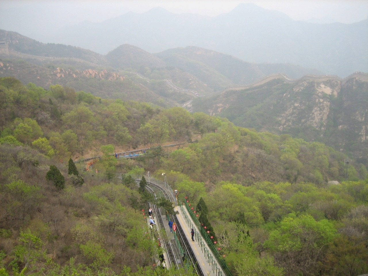 駐車場から長城までこれで移動します。登りはチェーンで引き上げます。