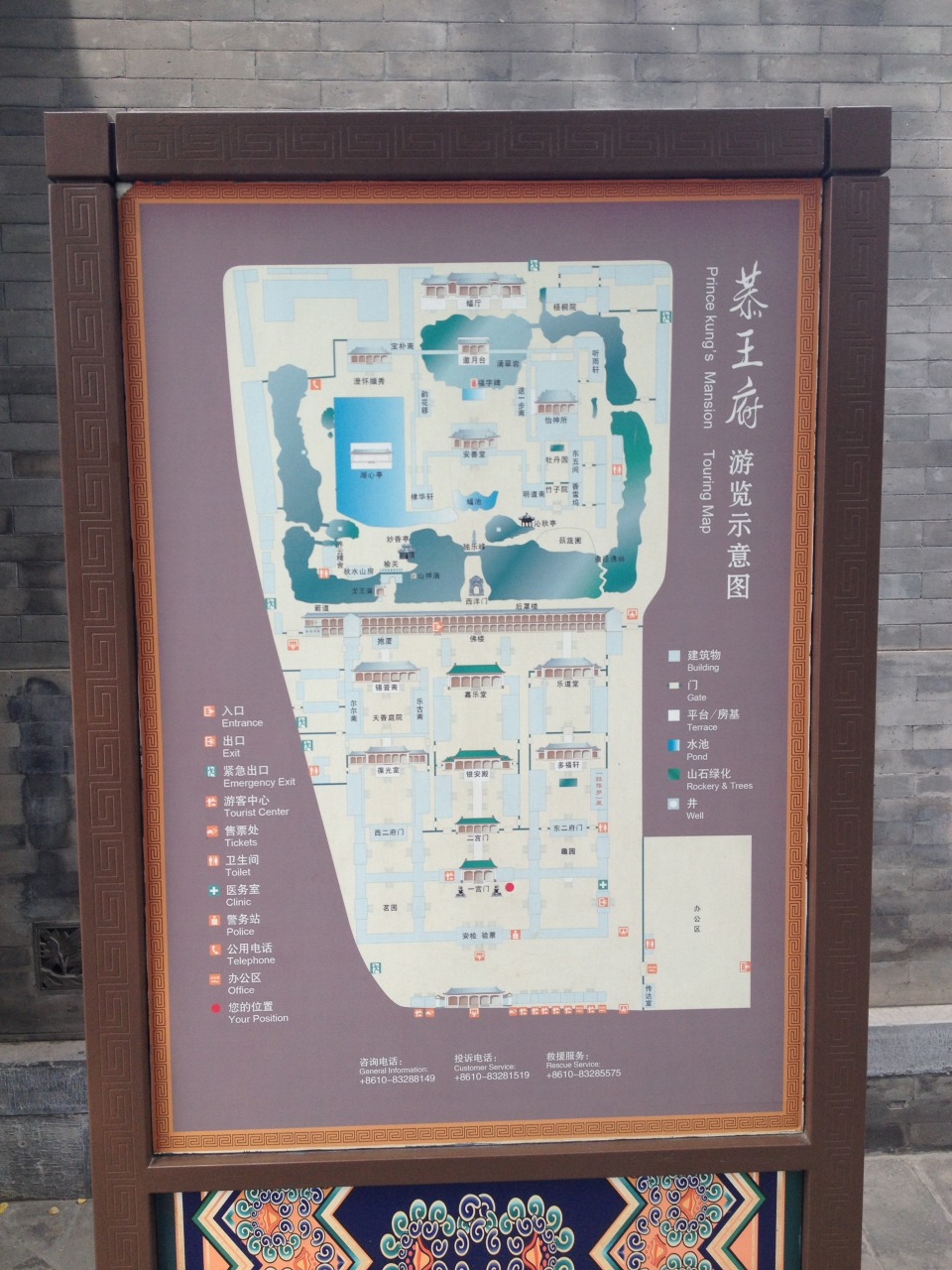 清朝末期、西太后が権力を握っていた時代の宰相(軍機大臣)、恭親王亦訢(GongQingWangYiXin)の屋敷が紫禁城の北の街中に残っています。 元々は乾隆帝の時の軍機大臣、和珅(HeShen)の屋敷でした。和珅はおそらく当時世界一の資産家と言われており、屋敷も贅を尽くしたものです。和珅は乾隆帝が亡くなると、次の嘉慶帝に死を賜り、財産は没収されます。 その後、嘉慶帝の弟に下げ渡され、清末に恭親王の屋敷となり、現代に伝わっています。中華民国時代には学校として使われていた時もあったそうです。