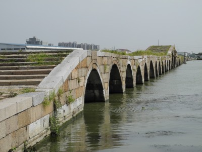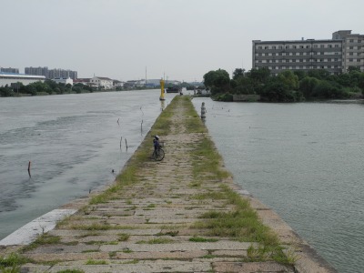 蘇州城外の大運河に架かる古い橋です。橋と言っても対岸に渡ることが目的ではなく、大運河を行く船を引っ張るために造られました。 歴史は古く、唐代の819年に建造が始まったそうです。この橋を造る事にした王仲舒という役人が自分の宝帯を売って建築費の足しにしたことから「宝帯橋」とつけられそうです。 橋の長さは317mあります。現在の橋は清朝末期 1873年に修復されたものです。司馬遼太郎の「街道をゆく 中国・江南のみち」で紹介されており、行ってみました。