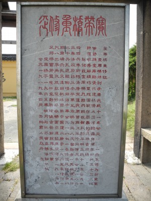 宝帯橋修理碑。これによると太平天国の乱により損壊し清末に修復。日中戦争の時に日本軍機の爆撃で損壊。1965年に修復、1982年に再度修復した、とあります。