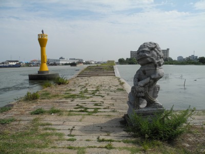 廟の前からの宝帯橋。中央部が高くなっているのがわかります。
