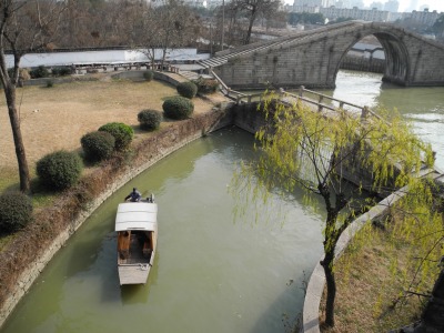 水用門から見た運河と呉門橋。北宗時代に造られましたが、太平天国の乱で失われ、清の1872年再建。呉門橋、盤門、瑞光塔が盤門三景。